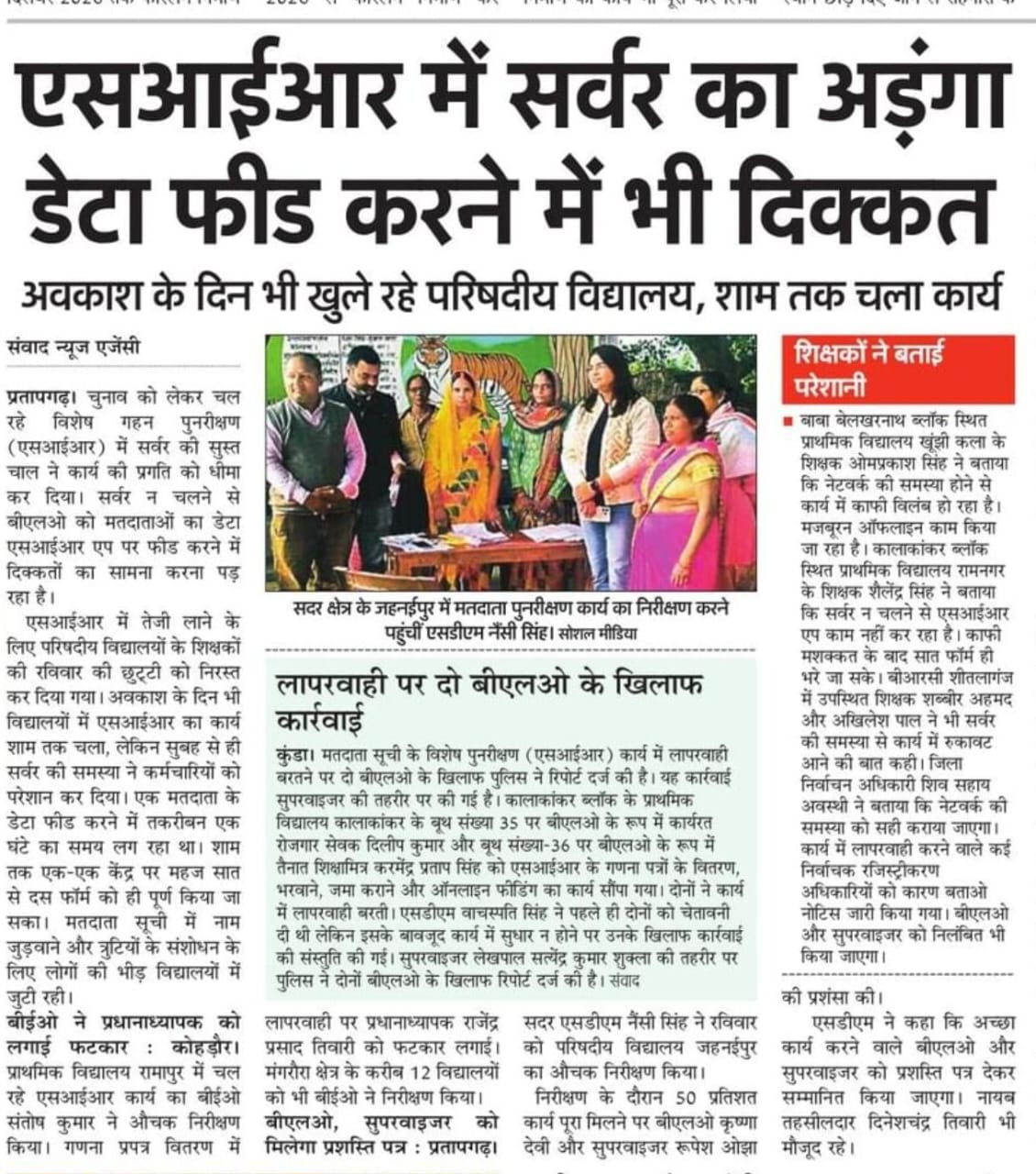 एसआईआर में सर्वर का अड़ंगा डेटा फीड करने में भी दिक्कत : अवकाश के दिन भी खुले रहे परिषदीय विद्यालय, शाम तक चला कार्य