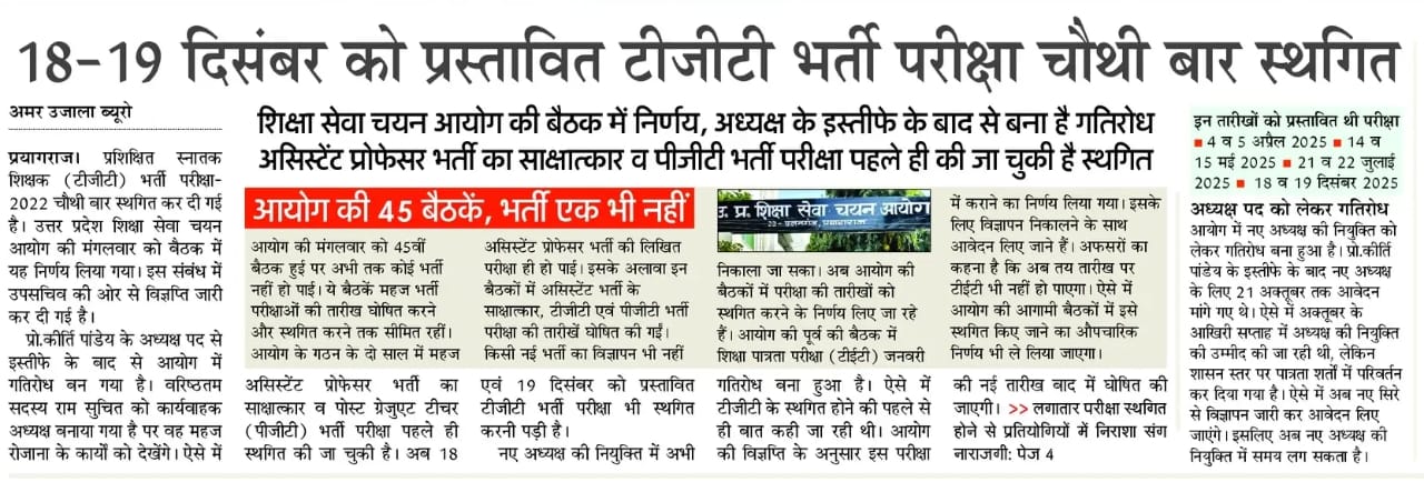 18-19 दिसंबर को प्रस्तावित टीजीटी भर्ती परीक्षा चौथी बार स्थगित