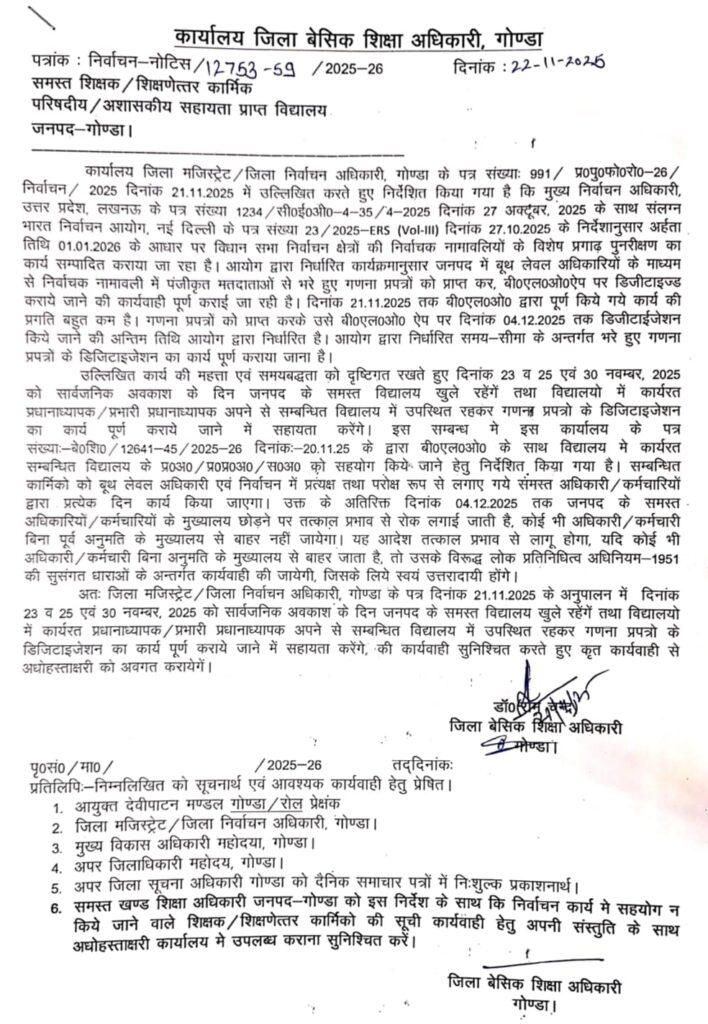 SIR : सार्वजनिक अवकाश के दिन भी खुले रहेंगे विद्यालय