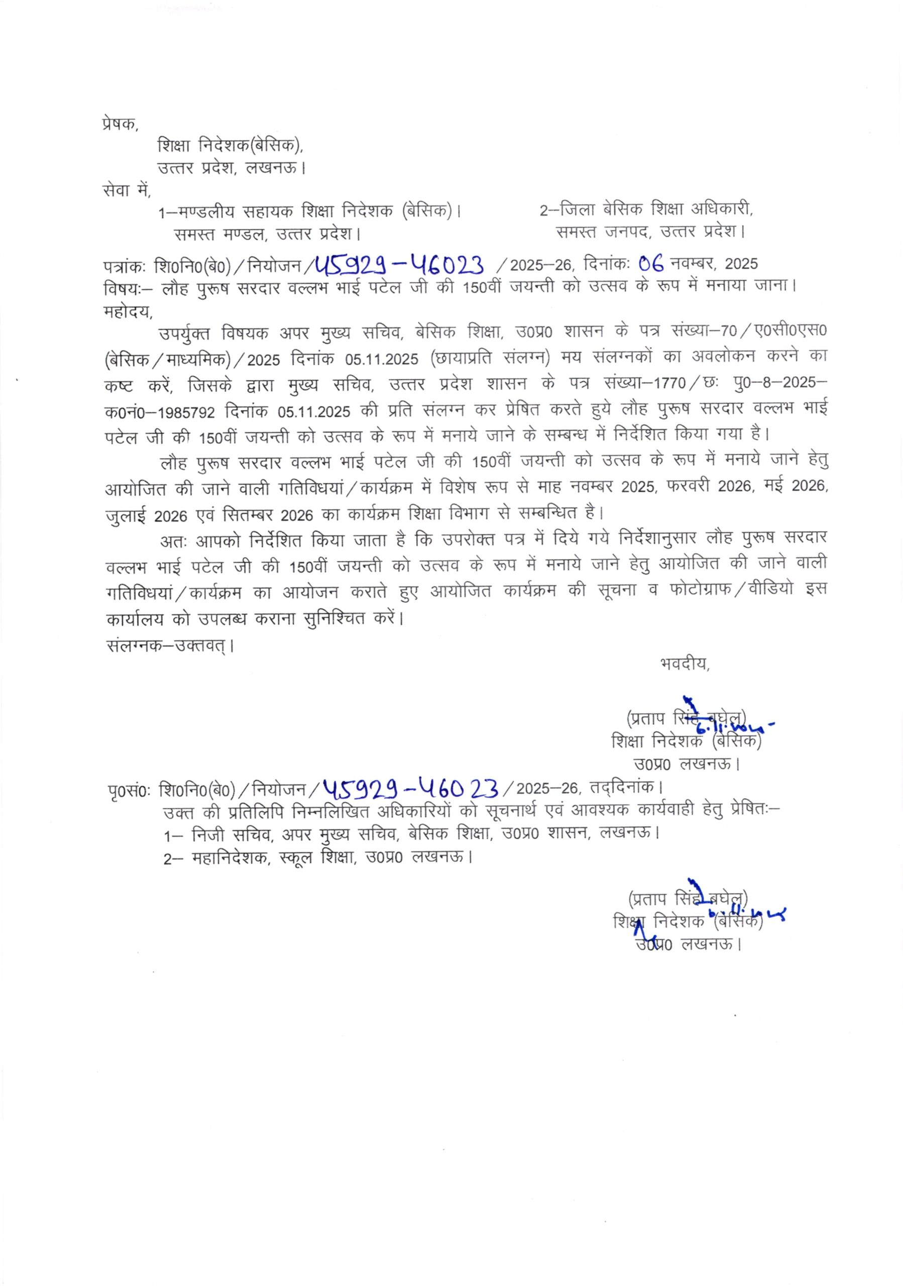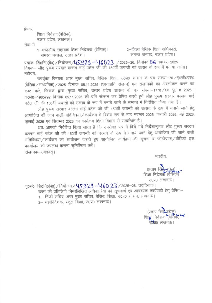 Home PRIMARY KA MASTER लौह पुरुष सरदार वल्लभ भाई पटेल जी की 150वीं जयन्ती को उत्सव के रूप में मनाया जाना।