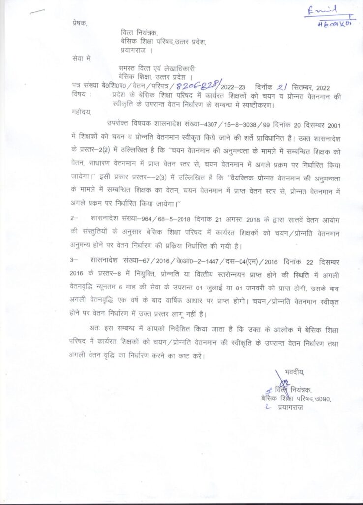 Home PRIMARY KA MASTER NEWS शिक्षकों की वेतन विसंगति निस्तारण के संबंध में आदेश