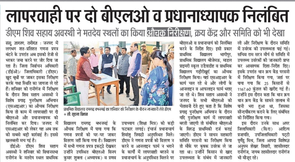 लापरवाही पर दो बीएलओ व प्रधानाध्यापक निलंबित