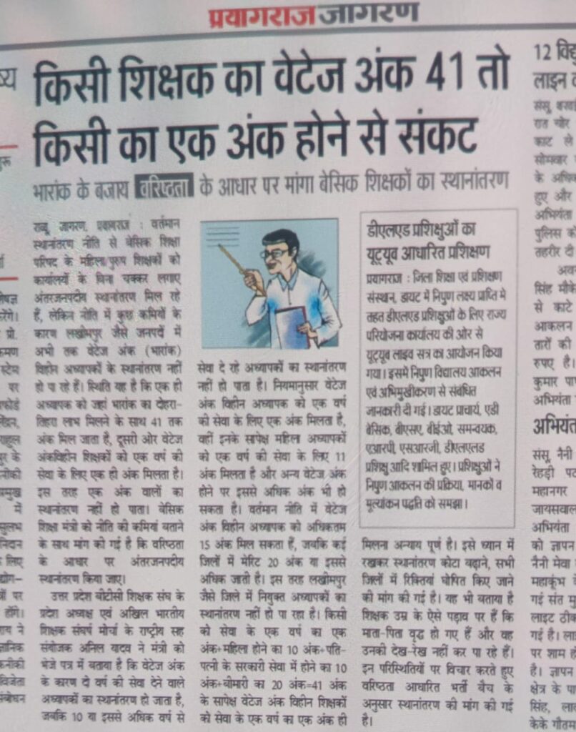 Home PRIMARY KA MASTER NEWS भारांक के बजाय वरिष्ठता के आधार पर मांगा बेसिक शिक्षकों का स्थानांतरण