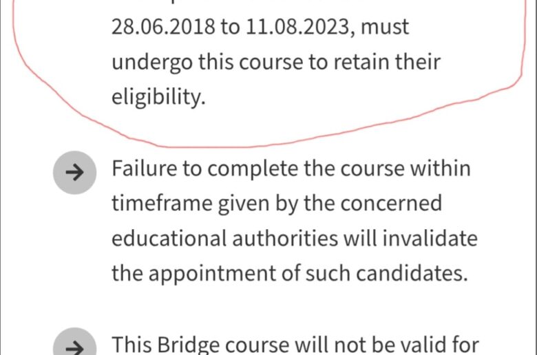 *कृपया ध्यान दें कि बी.एड. डिग्री धारी शिक्षक साथियों में से सिर्फ उन्हीं साथियों को एनआईओएस से ब्रिज कोर्स करना है जिनकी नियुक्ति 28-06-2018 से 11-08-2023 के बीच हुई हो*