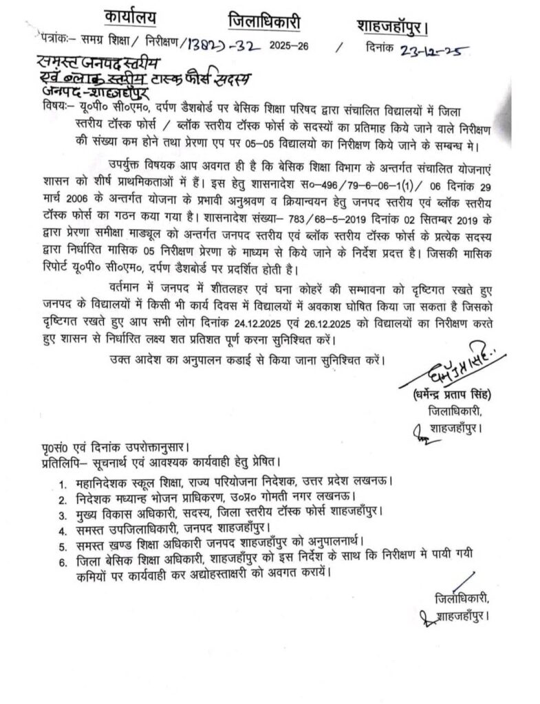 24 और 26 दिसंबर को बेसिक स्कूलों का सघन निरीक्षण