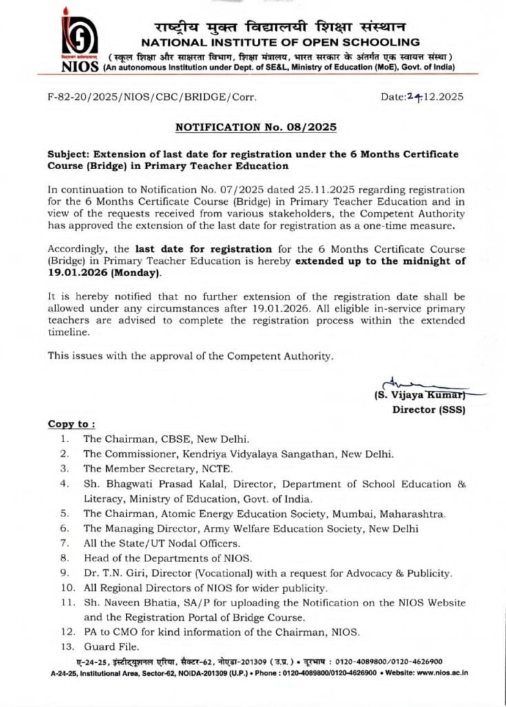 Bridge Course आवेदन की तिथि 19/01/2026 तक बढ़ाई गई , देखें
