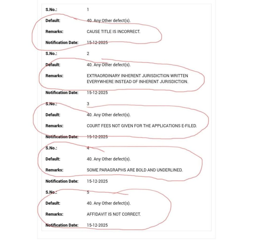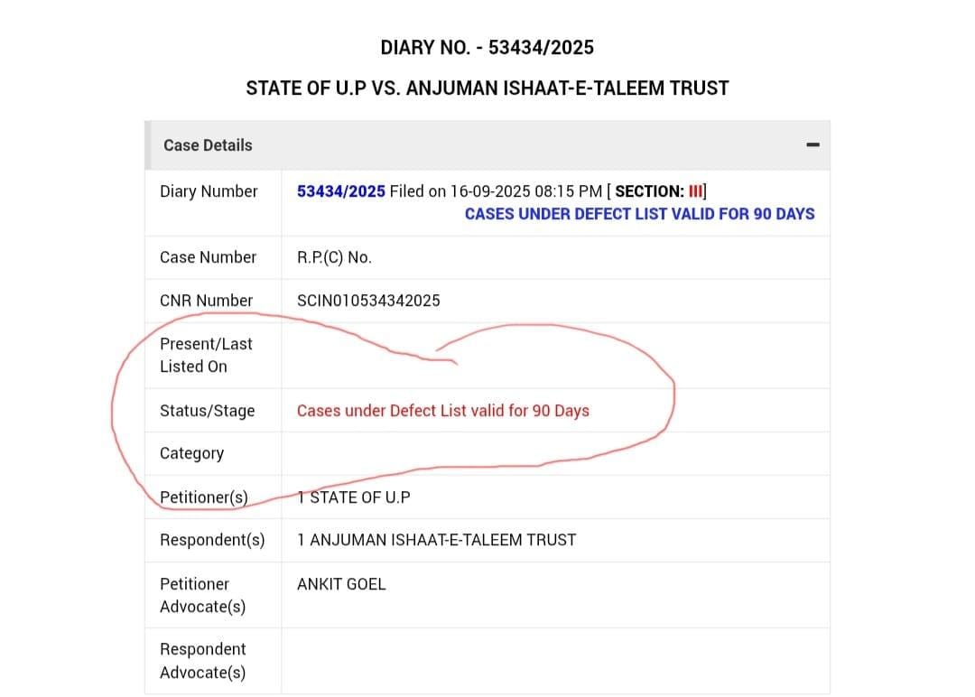 यूपी सरकार की पुनर्विचार याचिका में लगे, डिफेक्ट्स की सूची।