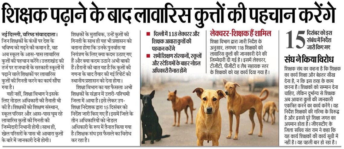 Home PRIMARY KA MASTER NEWS शिक्षक पढ़ाने के बाद लावारिस कुत्तों की पहचान करेंगे