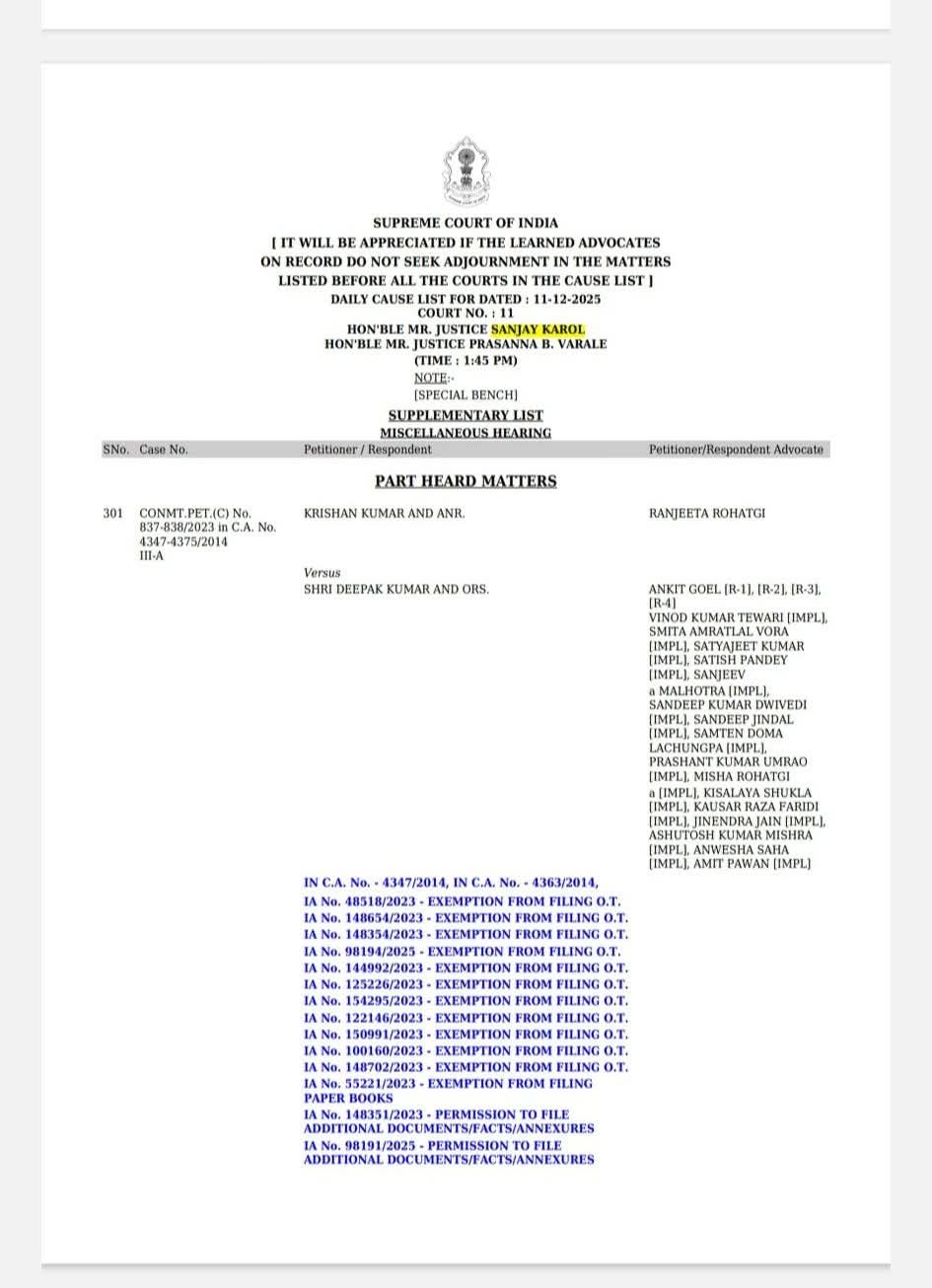 72825 शिक्षक भर्ती से जुड़े कंटेम्प्ट मामले की सुनवाई आज 1.45 PM पर होगी चूँकि कल मामला Part Heard हो गया था और आज जस्टिस संजय करोल जी किसी अन्य जज के साथ बैठ रहे है इसलिए आज स्पेशल बेंच बनी है सुनवाई के लिए
