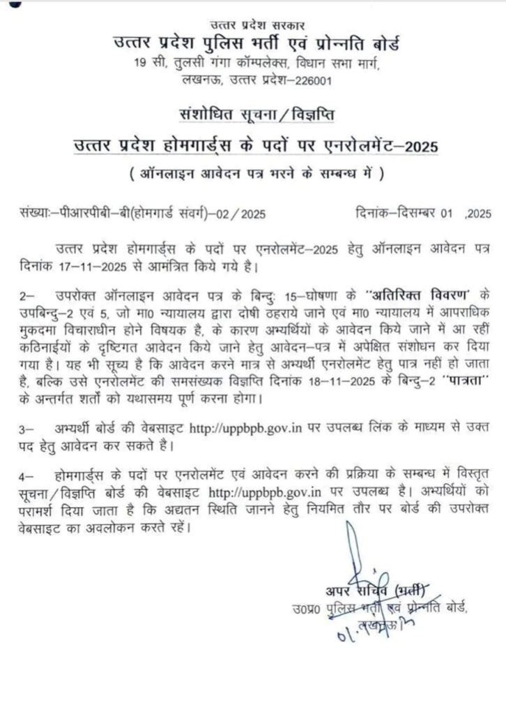 उत्तर प्रदेश होमगार्ड्स के पदों पर एनरोलमेंट- 2025 के अंतर्गत भरे जा रहे आवेदन पत्रों के सम्बन्ध में महत्वपूर्ण सूचना..!!✅