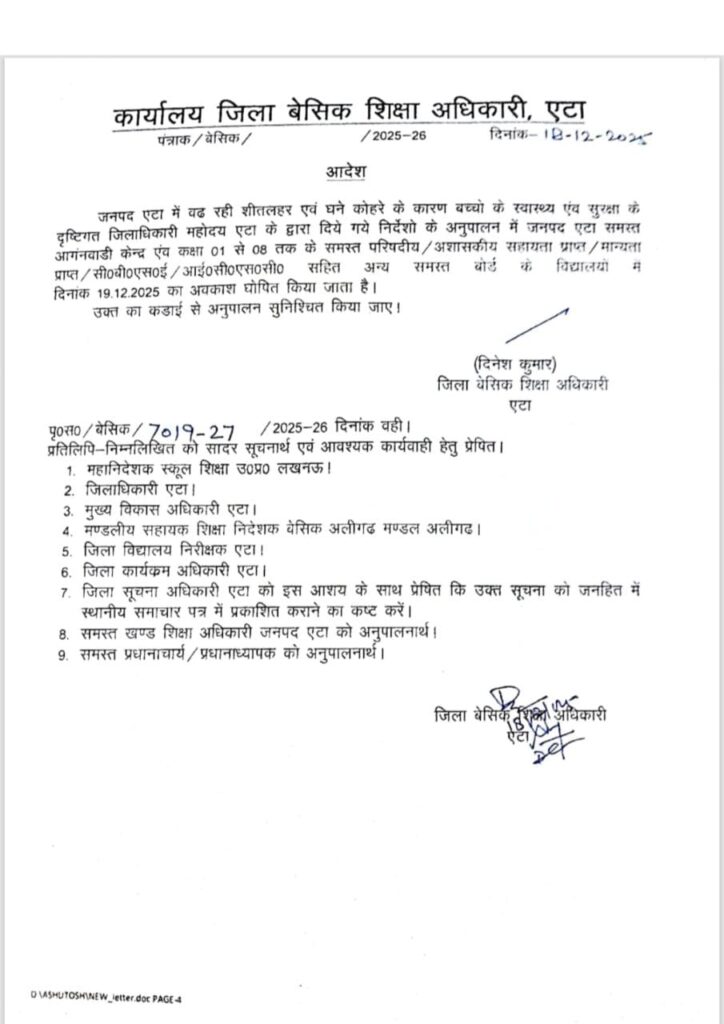 Home HOLIDAY एक और जनपद में कल का अवकाश घोषित