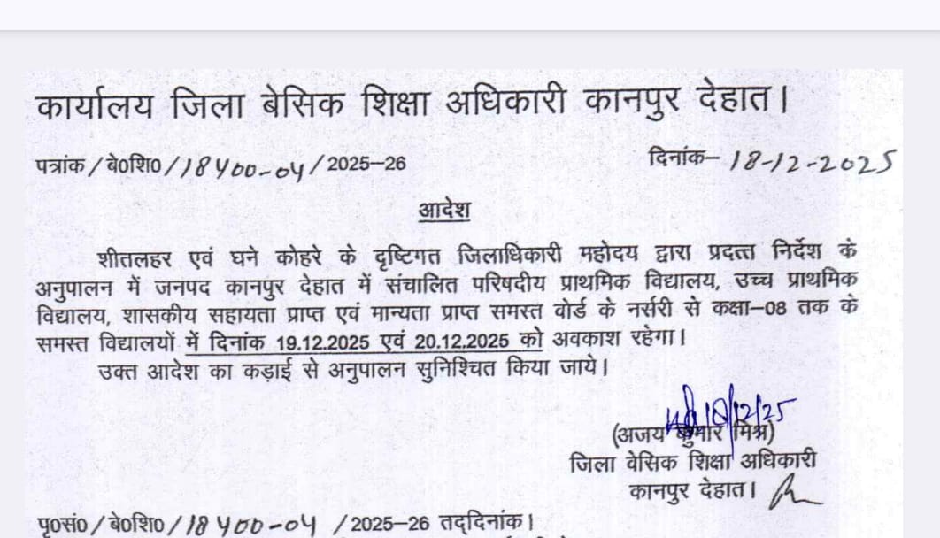इस जनपद में 20 दिसम्बर तक अवकाश घोषित