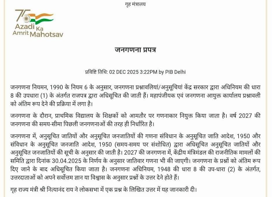 इस बार जनगणना #डिजिटल होगी और #जातियों की भी गणना की जाएगी।