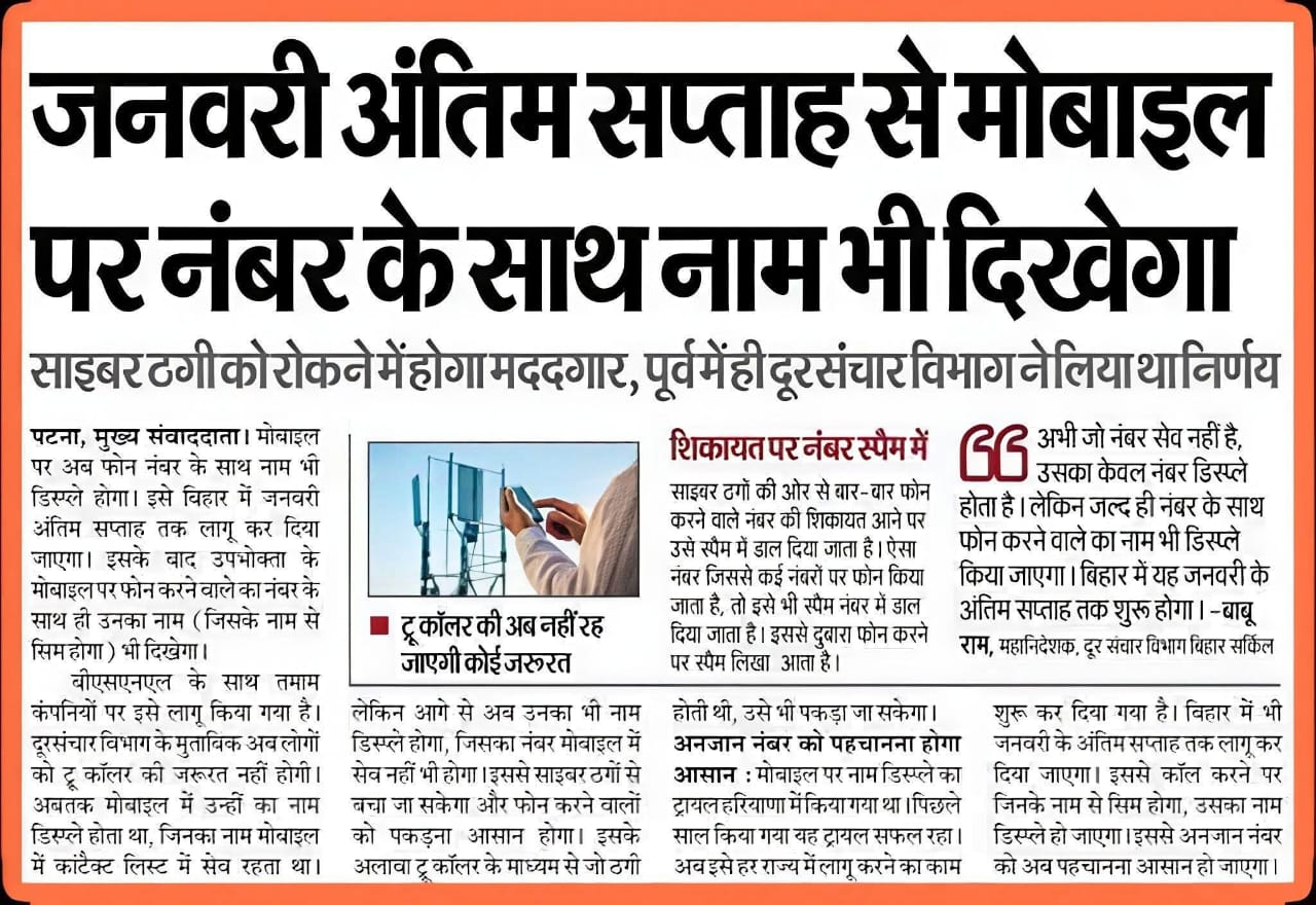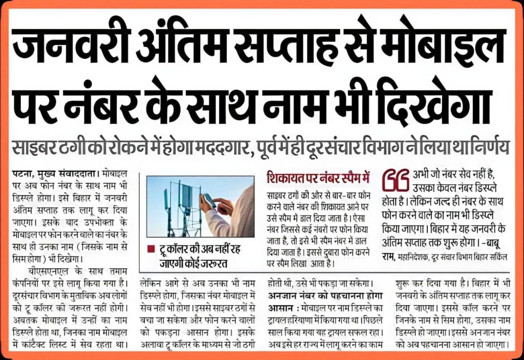 Home PRIMARY KA MASTER NEWS जनवरी के अंतिम सप्ताह से मोबाइल पर नंबर के साथ KYC नाम भी दिखेगा।