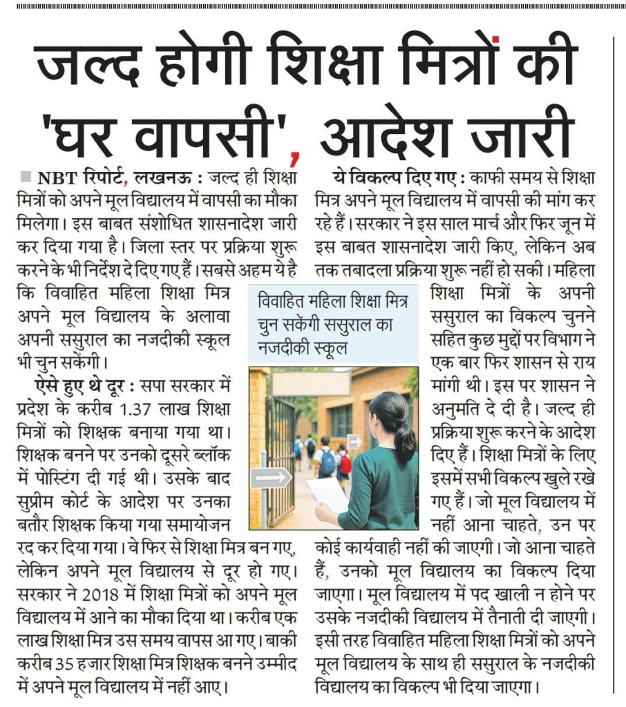 जल्द होगी शिक्षा मित्रों की ‘घर वापसी’, आदेश जारी