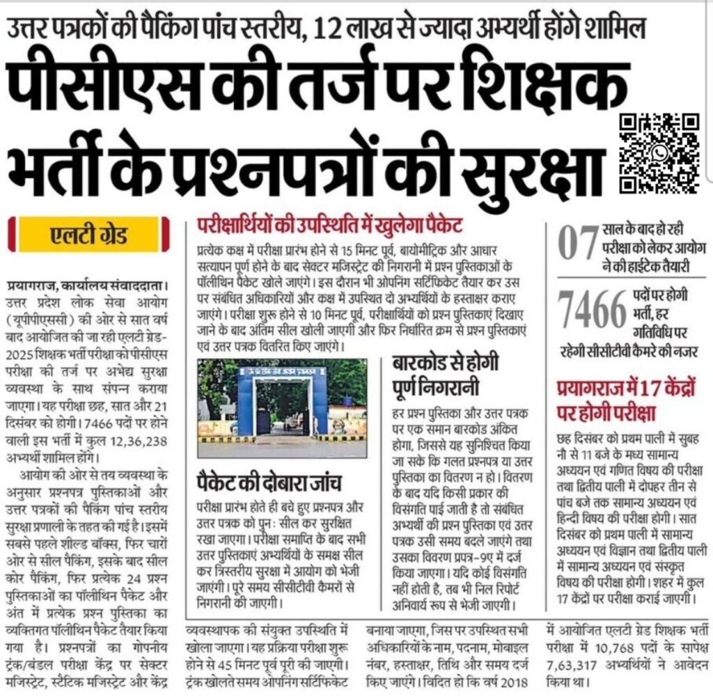 Home शिक्षा विभागLT GRADE पीसीएस की तर्ज पर शिक्षक भर्ती के प्रश्नपत्रों की सुरक्षा