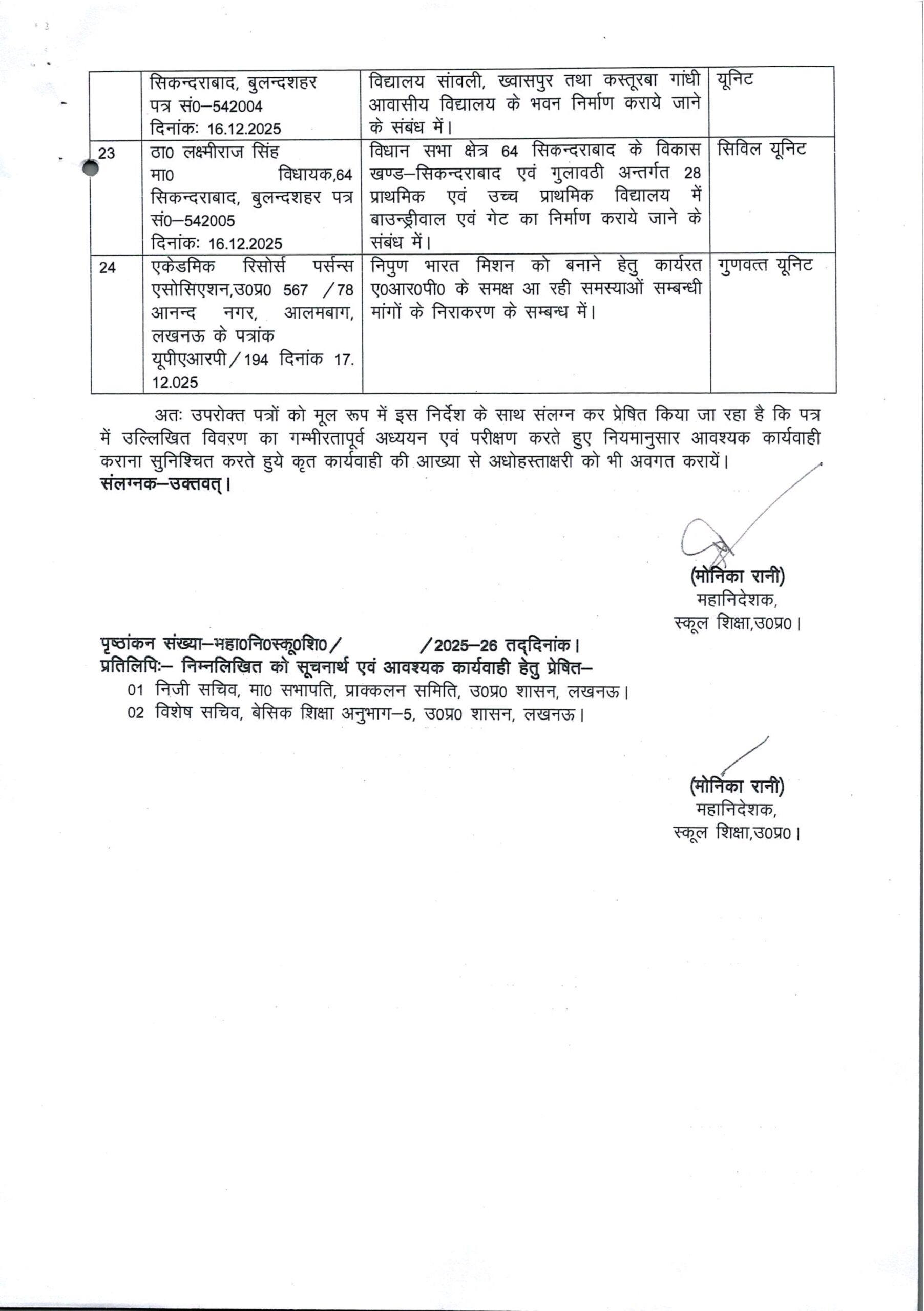 प्राक्लन समिति की बैठक दिनांक 16.12.2025 में समिति द्वारा उपलब्ध कराये गये ई0सी0सी0ई0 एजुकेटर चयन सम्बंधी शिकायती प्रकरण पर जांच के कराये जाने के सम्बन्ध में।