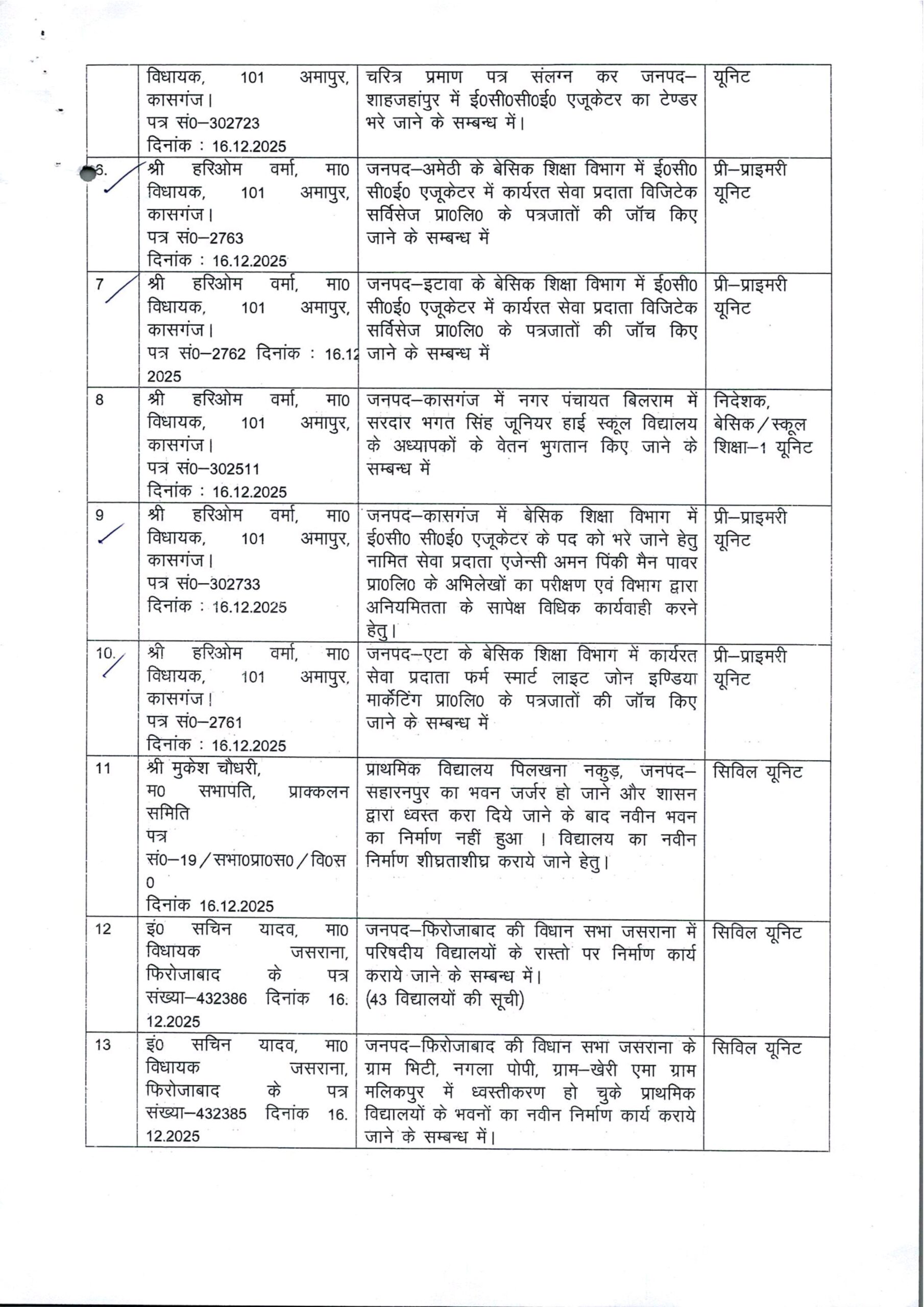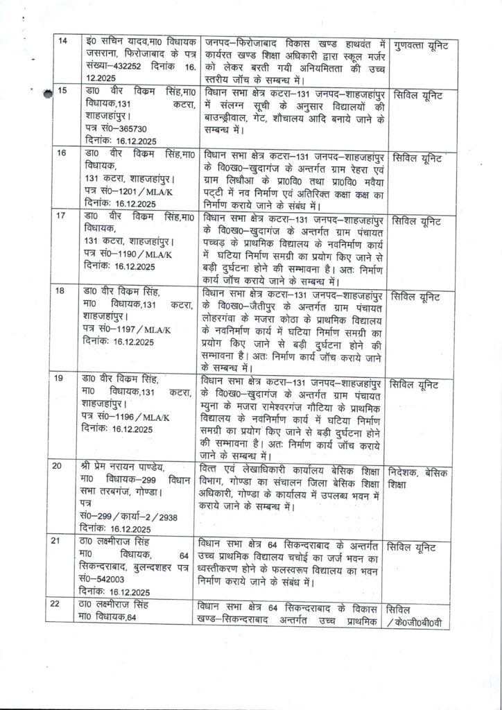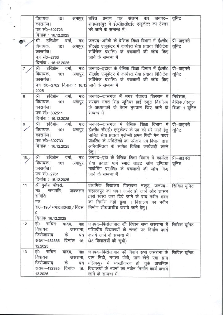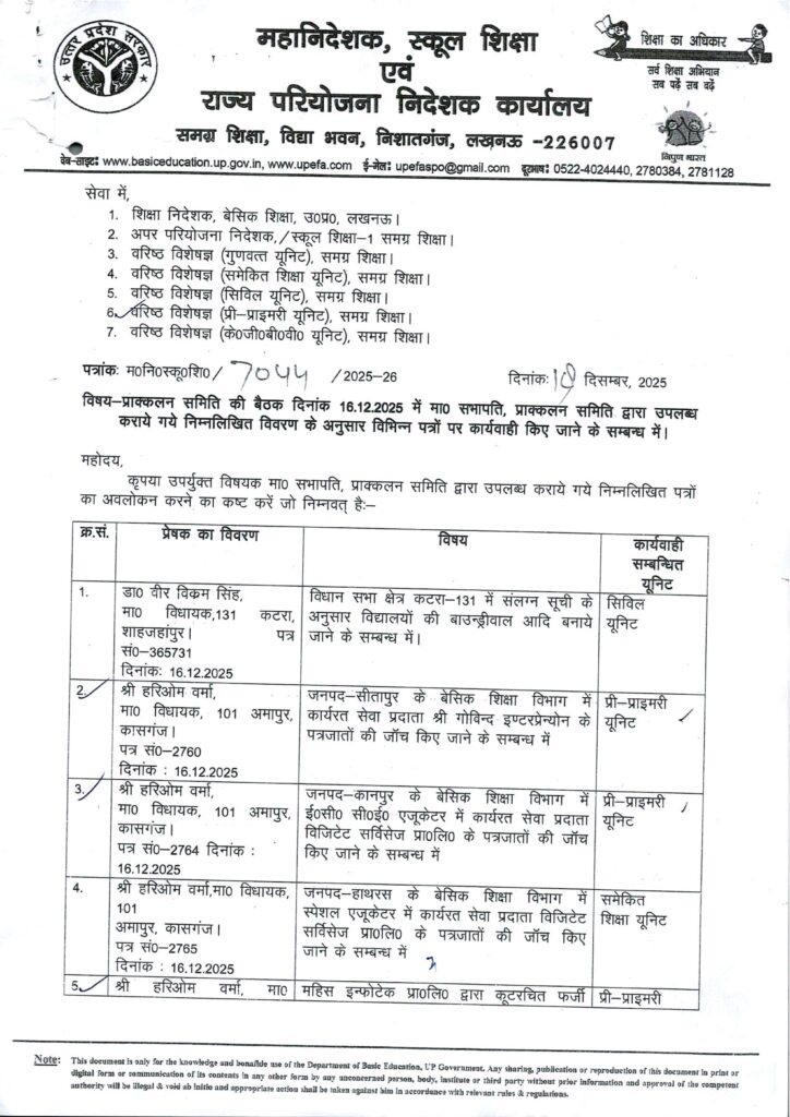 Home PRIMARY KA MASTER प्राक्लन समिति की बैठक दिनांक 16.12.2025 में समिति द्वारा उपलब्ध कराये गये ई0सी0सी0ई0 एजुकेटर चयन सम्बंधी शिकायती प्रकरण पर जांच के कराये जाने के सम्बन्ध में।