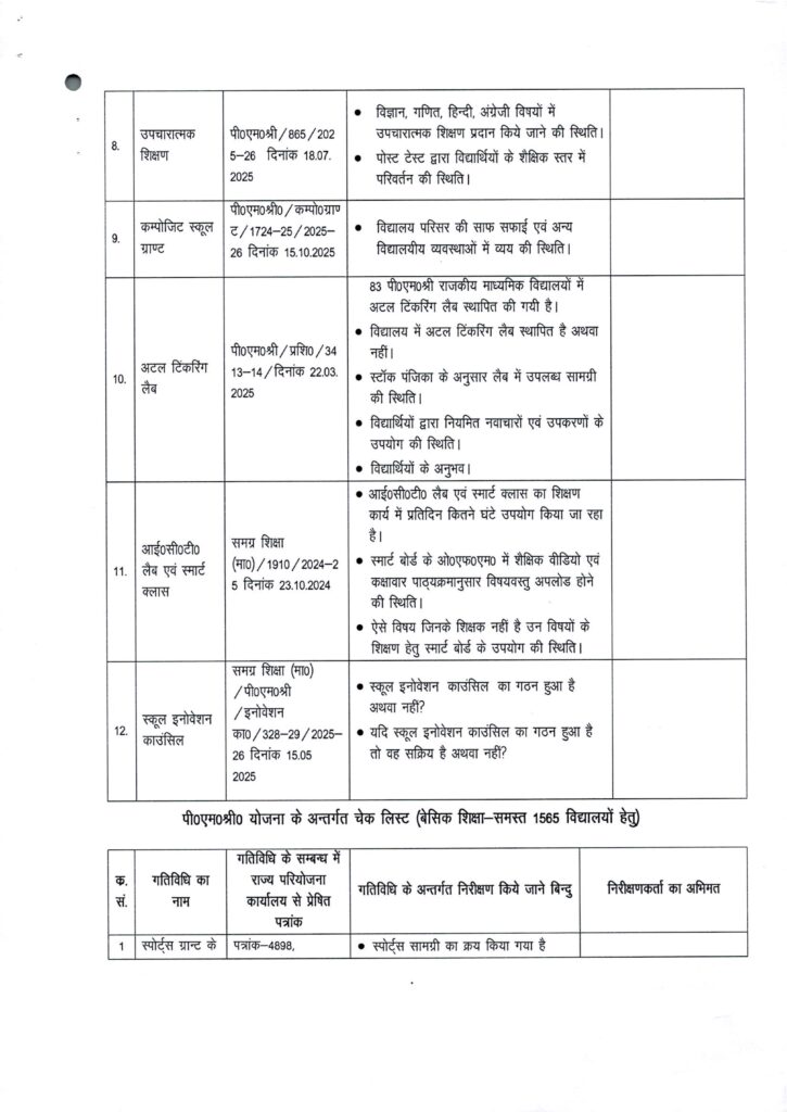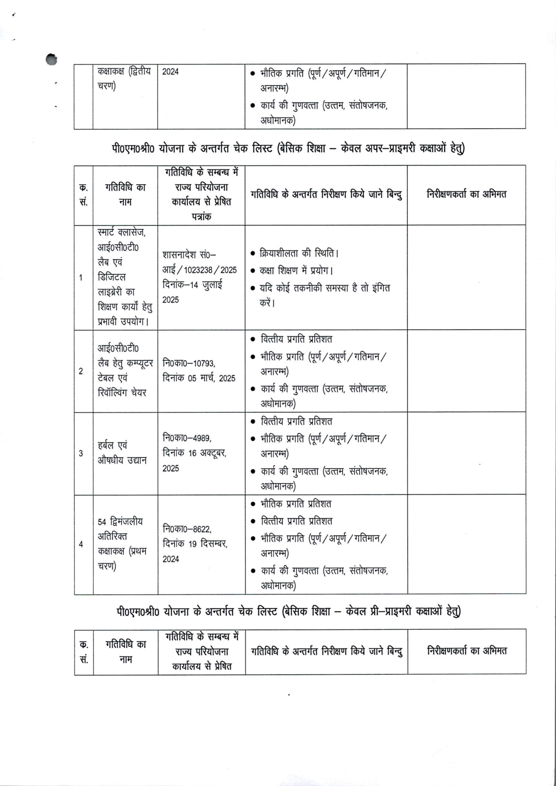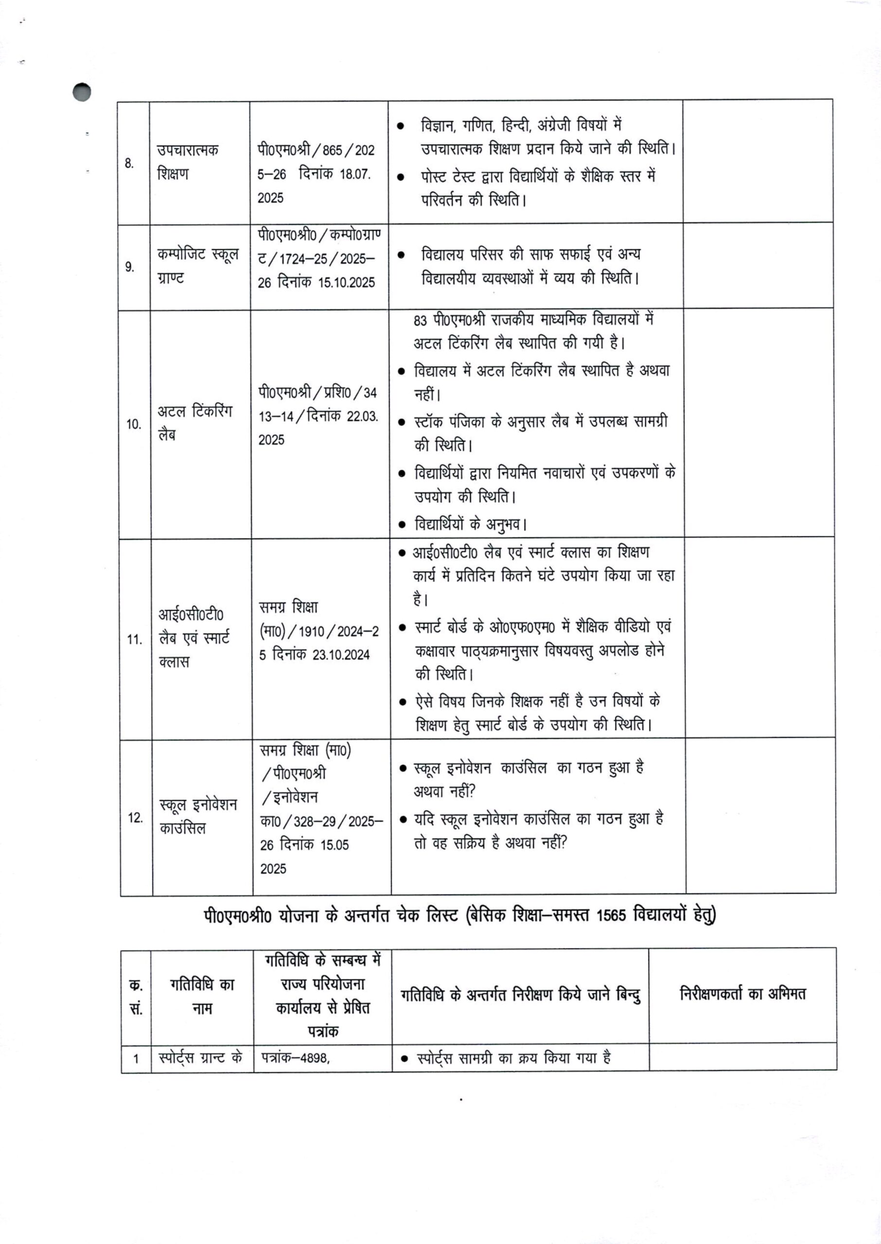 PM shri school : पी0एम0श्री0 विद्यालयों के सघन निरीक्षण किये जाने के सम्बन्ध में।