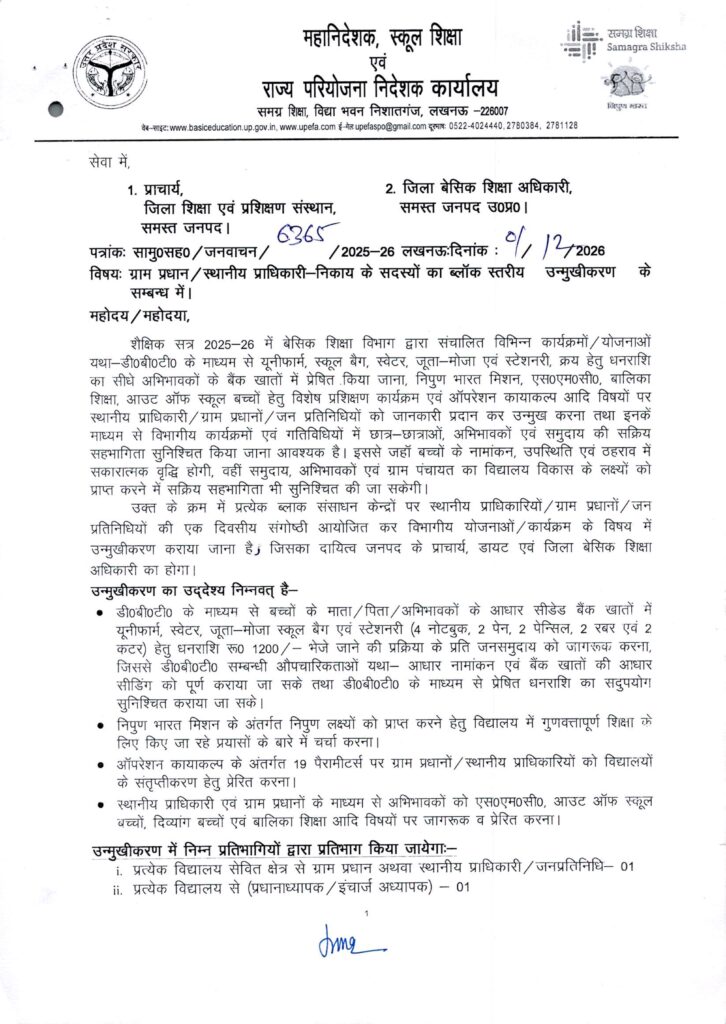 Home PRIMARY KA MASTER Primary ka master: ग्राम प्रधान/स्थानीय प्राधिकारी-निकाय के सदस्यों का ब्लॉक स्तरीय अन्मुखीकरण के सम्बन्ध में।