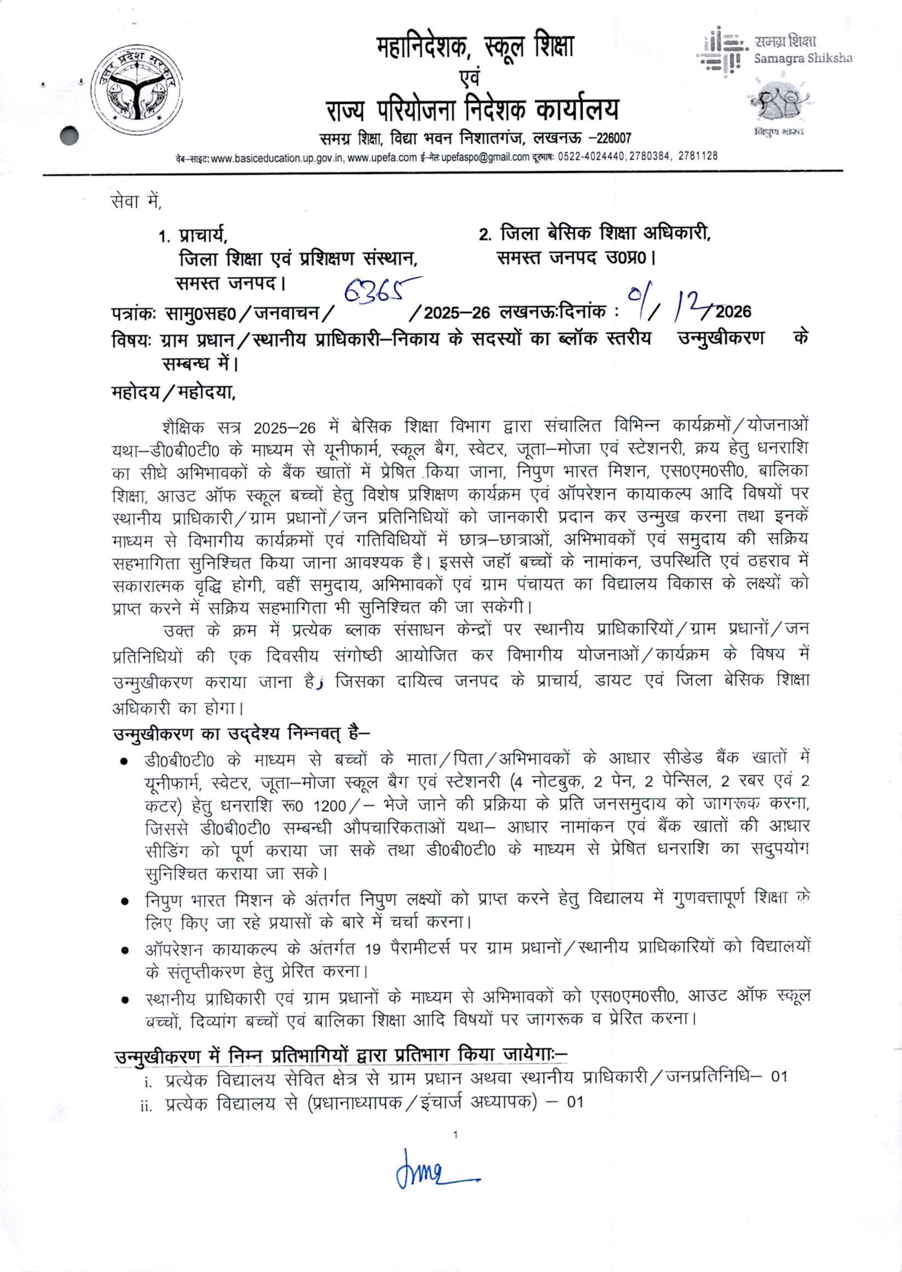 Primary ka master: ग्राम प्रधान/स्थानीय प्राधिकारी-निकाय के सदस्यों का ब्लॉक स्तरीय अन्मुखीकरण के सम्बन्ध में।