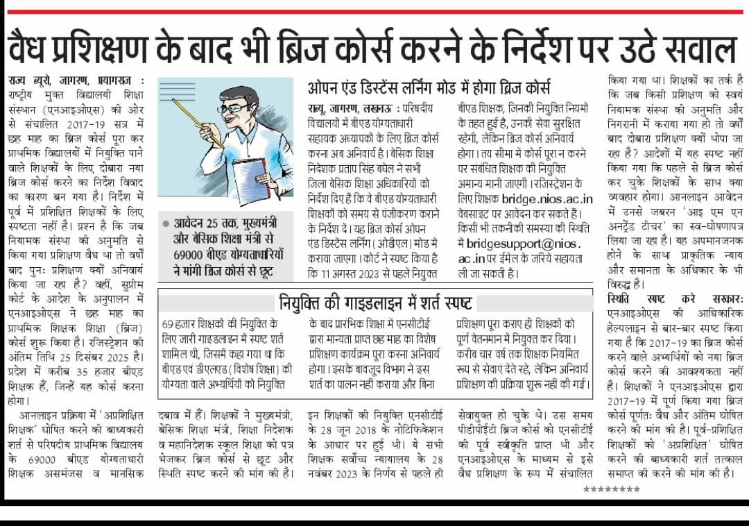 *बोले शिक्षक, दोबारा नया ब्रिज कोर्स करने के निर्देश में प्रशिक्षित शिक्षकों के लिए स्पष्टता नहीं*