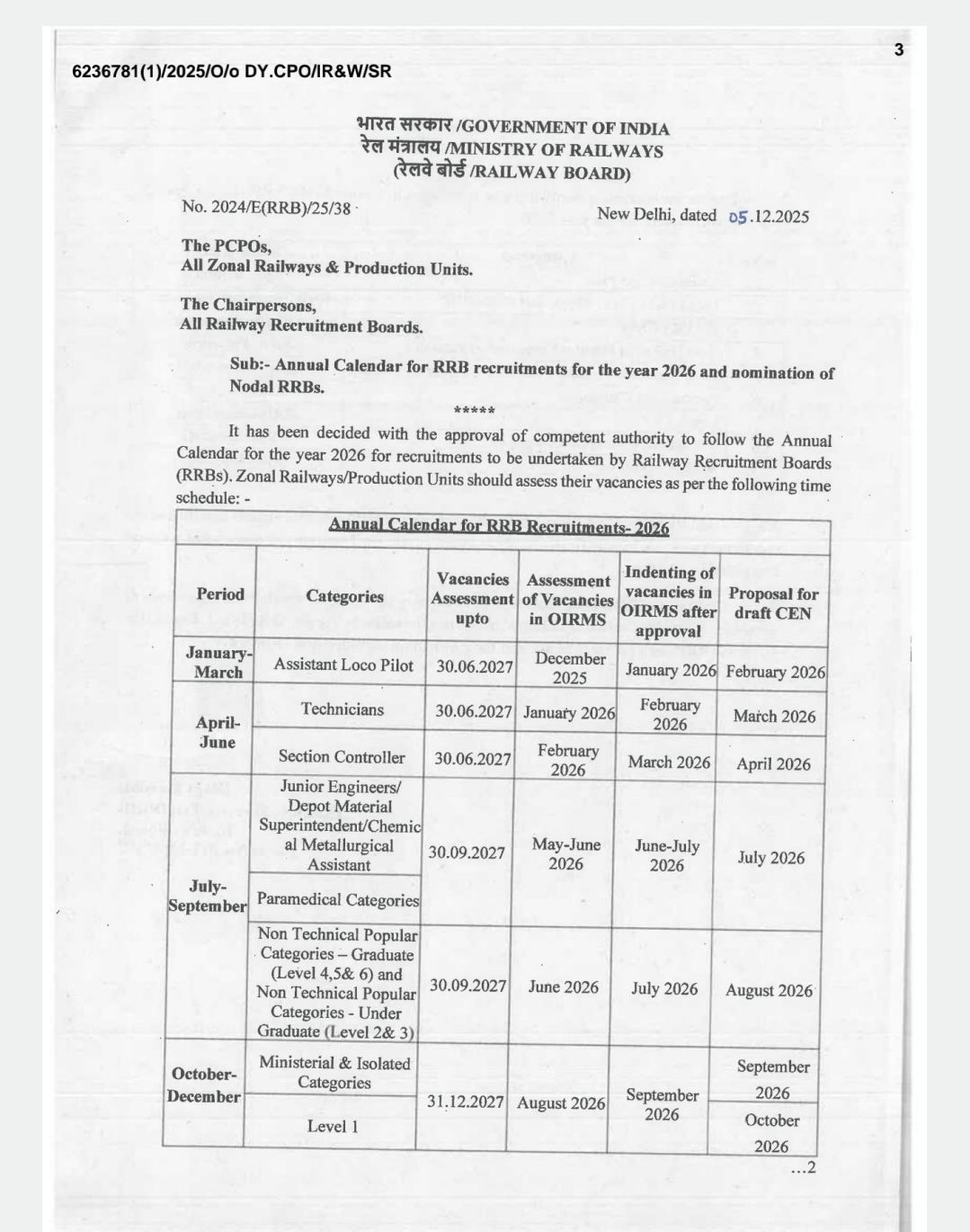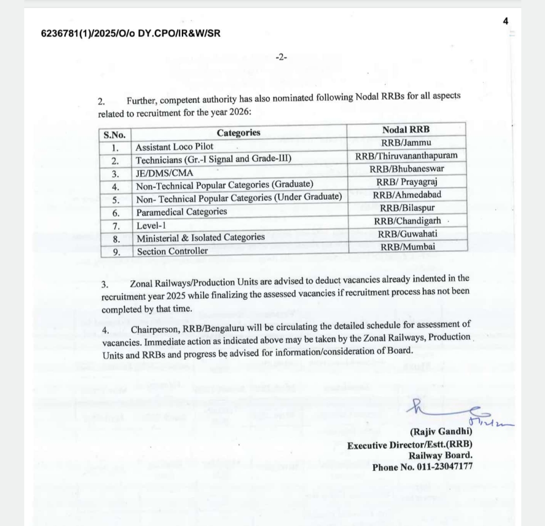 रेलवे भर्ती वार्षिक कैलेण्डर 2026 जारी✍️ , देखें