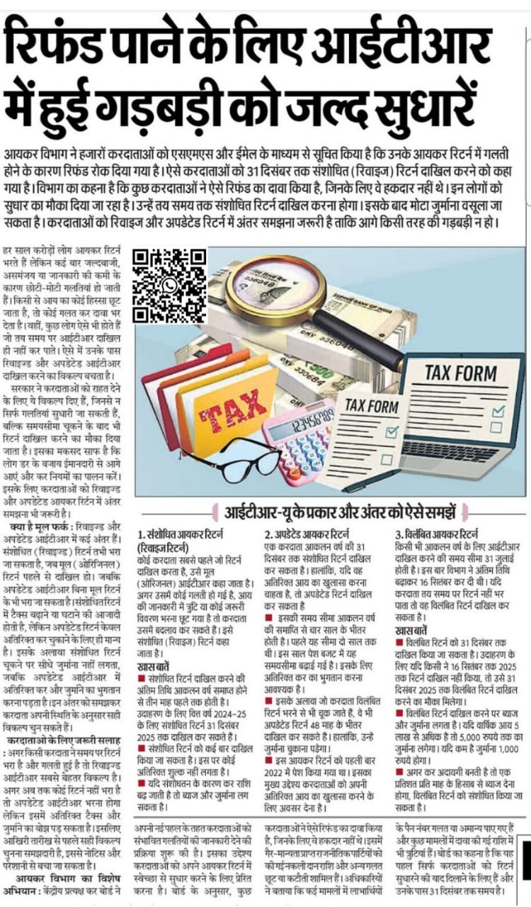 Home PRIMARY KA MASTER NEWS रिफंड पाने के लिए आईटीआर में हुई गड़बड़ी को जल्द सुधारें