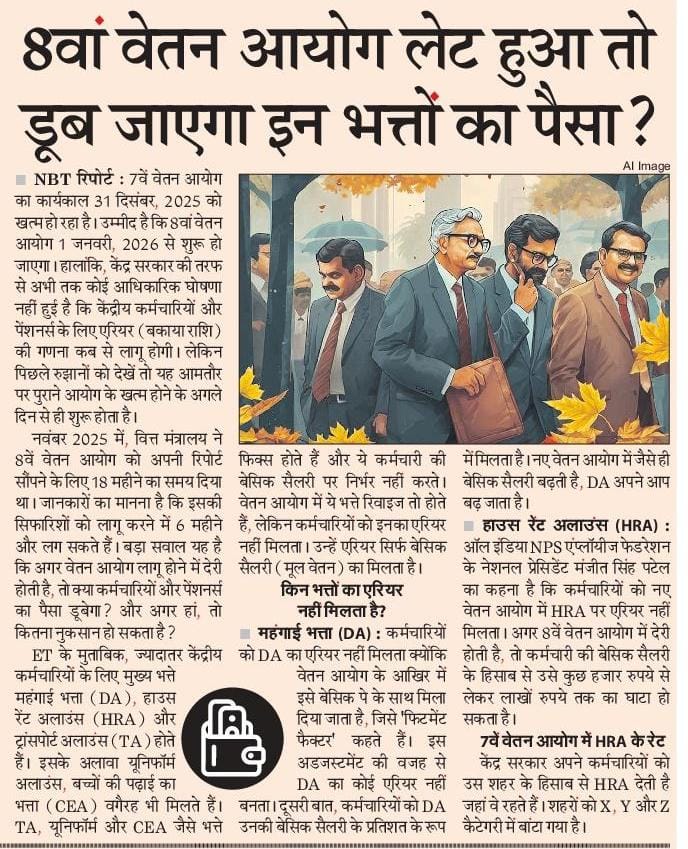 Home PRIMARY KA MASTER NEWS 8वां वेतन आयोग लेट हुआ तो डूब जाएगा इन भत्तों का पैसा ?