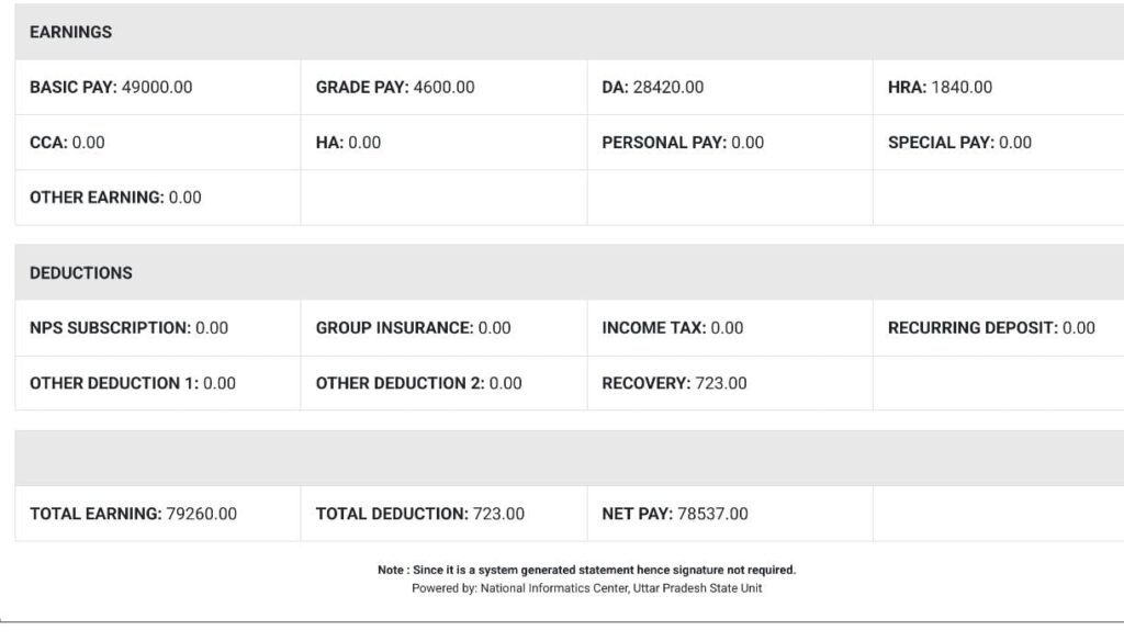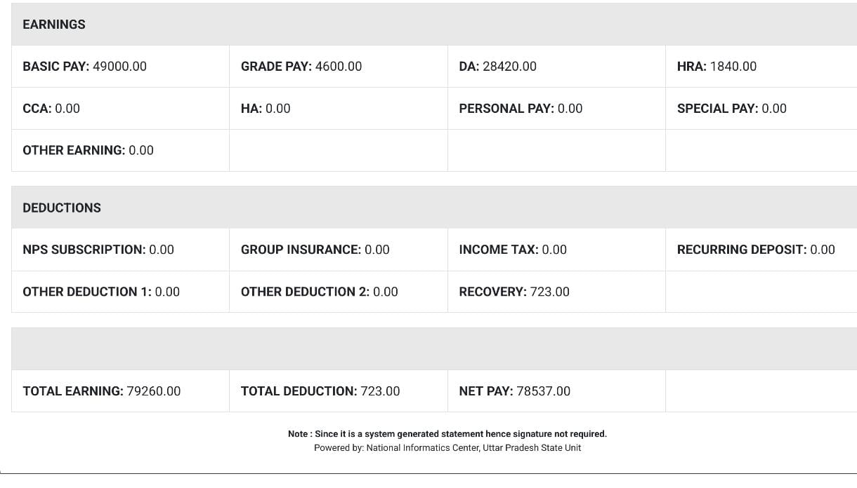 72825 में चयनित हमीरपुर जनपद में माह नवंबर 2025 की चयन वेतनमान सहित सैलेरी स्लिप