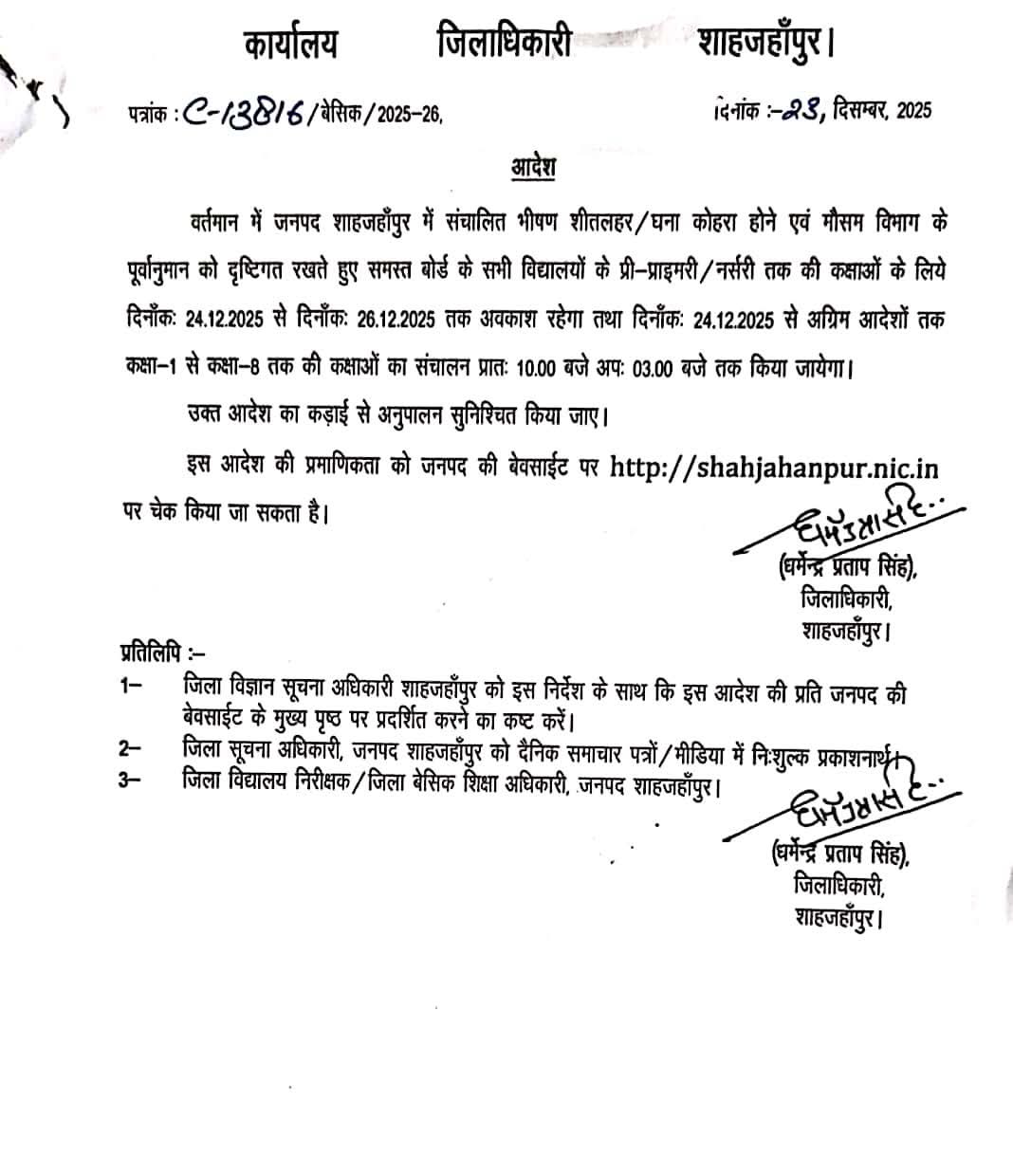 जनपद में 24 तक स्कूल में हुआ अवकाश