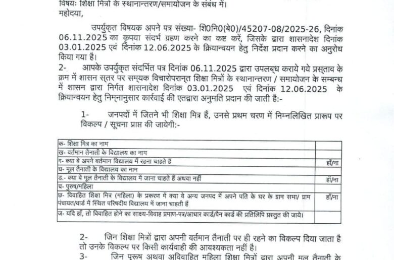 शिक्षामित्रों के स्थानान्तरण/समायोजन के संबंध में सचिव को सचिव का शासनादेश जारी