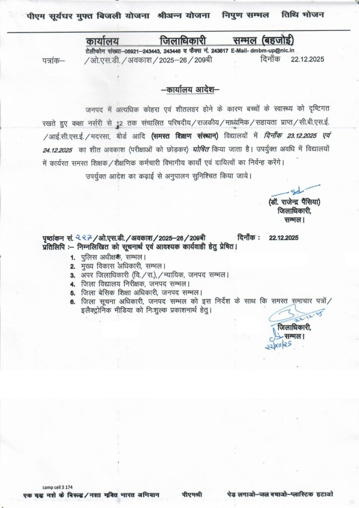 Home HOLIDAY शीतलहर के दृष्टिगत छात्रों के लिए 23 व 24 का अवकाश हुआ घोषित