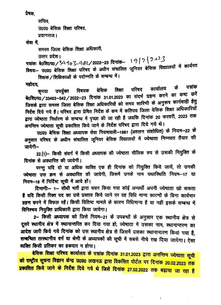 03-किसी अध्यापक को जिसे नियम-21 के उपबन्धों के अनुसार एक स्थानीय क्षेत्र से दूसरे स्थानीय क्षेत्र में स्थानान्तरित कर दिया गया हो, ज्येष्ठता में उसका नाम, स्थानान्तरण का आदेश जारी किये गये दिनांक को उस स्थानीय क्षेत्र से जिसमें उसका स्थानान्तरण कियां गया है, सम्बन्धित तत्स्थानीय वर्ग या श्रेणी के अध्यापकों की सूची में सबसे नीचे रख दिया जायेगा। ऐसा व्यक्ति किसी प्रतिकर का हकदार न होगा।