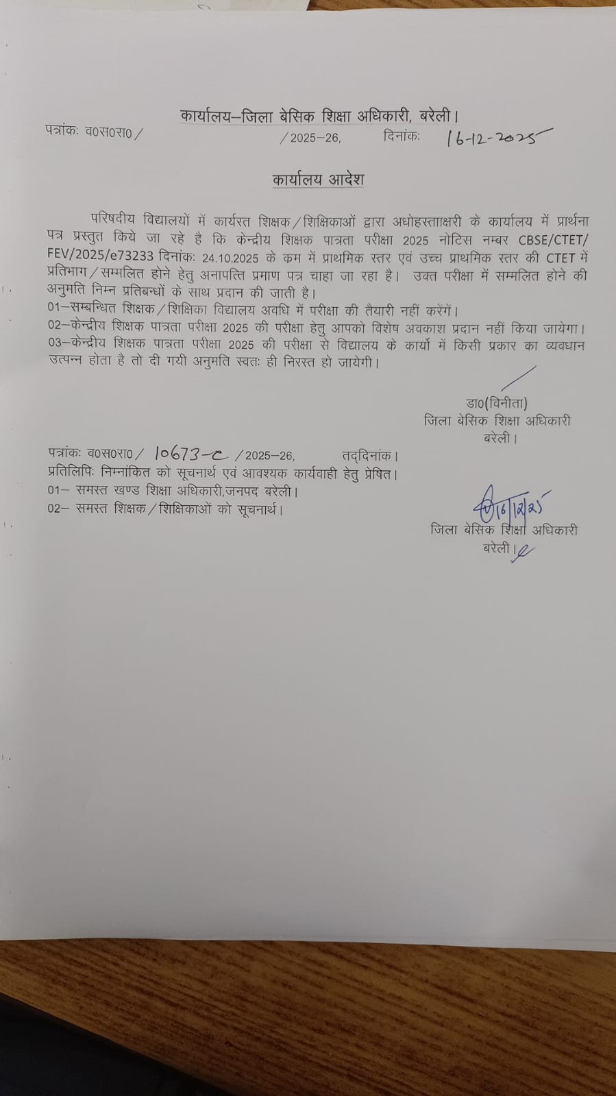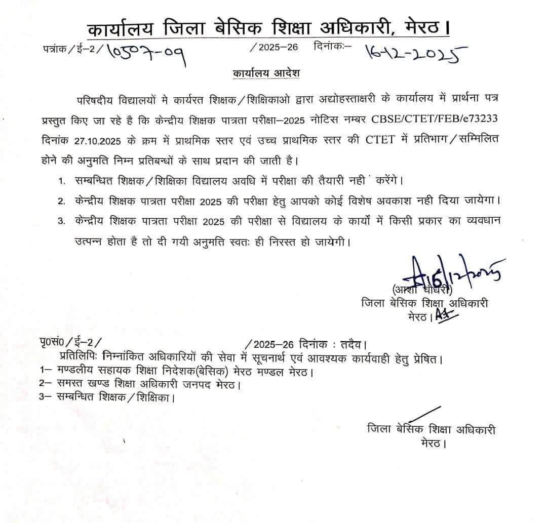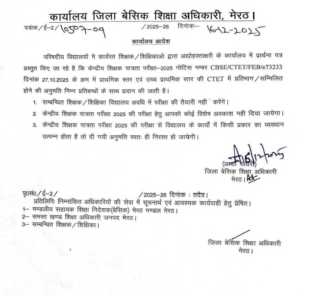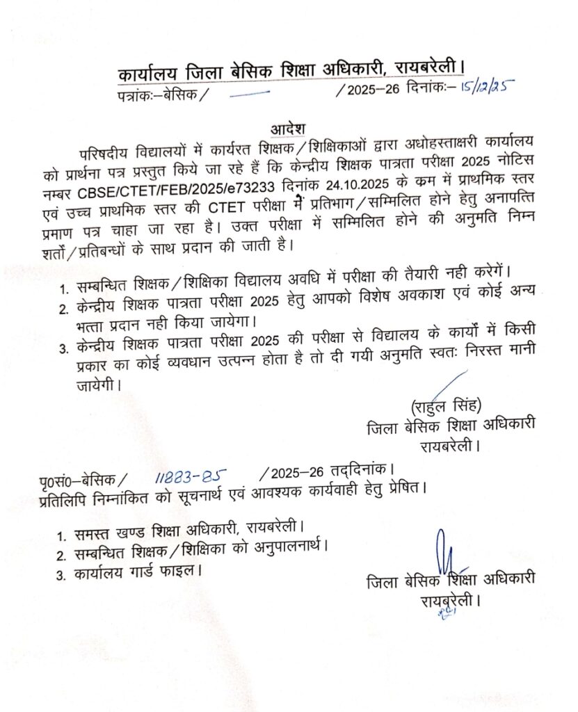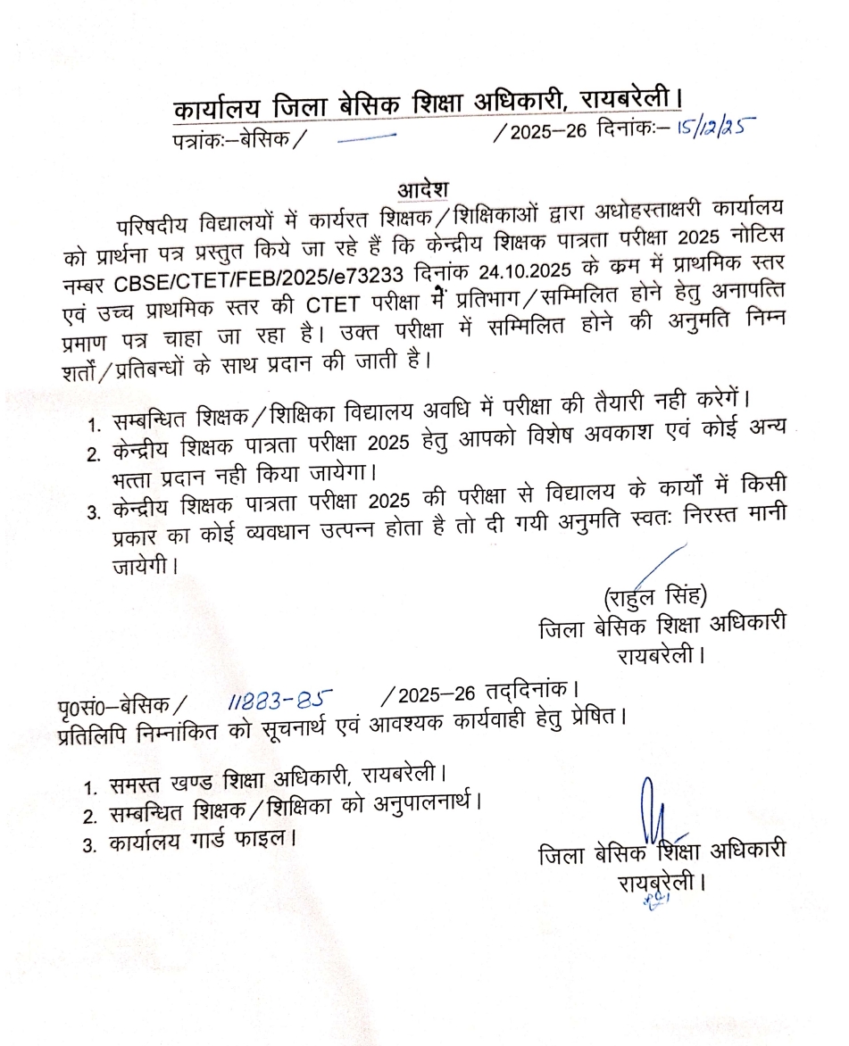 इस जनपद ने जारी की CTET परीक्षा के लिए सामूहिक NOC