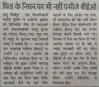 अभी भी कई beo इसी तरह से वेतन काटकर शिक्षकों से वसूली करने में लगे हुए है, अपने दलालों के इशारे पर एवं दलालों के कहने पर, लगातार शिक्षकों का वेतन काट रहे है BEO अपने विवेक से निर्णय लें, शिक्षकों की सैलरी को बेवजह से न काटे, अन्यथा किसी दिन शेर दिल अपनी पर आ गया तो हो सकता आपकी सर्दी भी घर से बाहर जेल में कटे ।