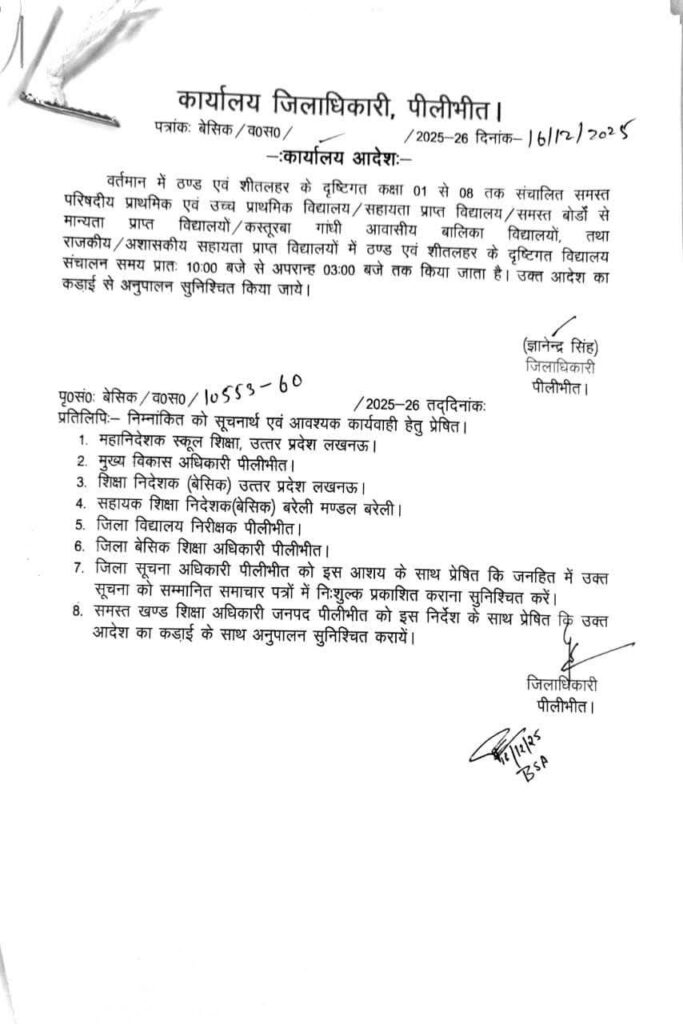 पीलीभीत जिले का समय परिवर्तन आदेश जारी।👆, देखें