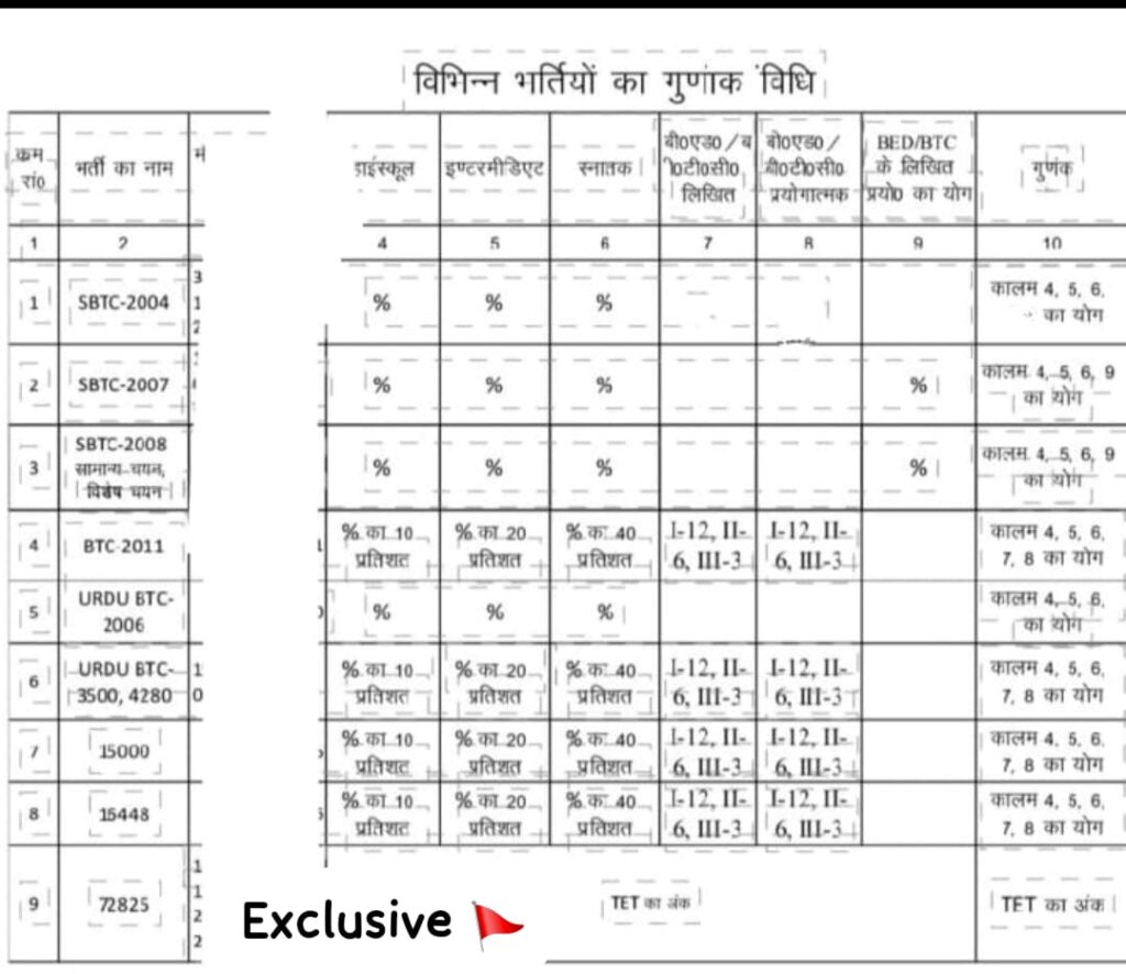 Home PRIMARY KA MASTER NEWS विशिष्ट बीटीसी के अंतर्गत हुई विभिन्न भर्तियों में नियुक्ति का चयन गुणांक
