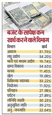 दिसंबर शुरू हो चुका है और यह वित्तीय वर्ष समाप्त होने में तीन महीने से कुछ ज्यादा बचे हैं। बावजूद इसके अब तक बजट का कुल 39 फीसदी ही विभाग खर्च कर सके हैं। दो-तिहाई से ज्यादा विभाग ऐसे हैं, जिनका बजट के सापेक्ष खर्च अभी 50 फीसदी भी नहीं पहुंचा है।