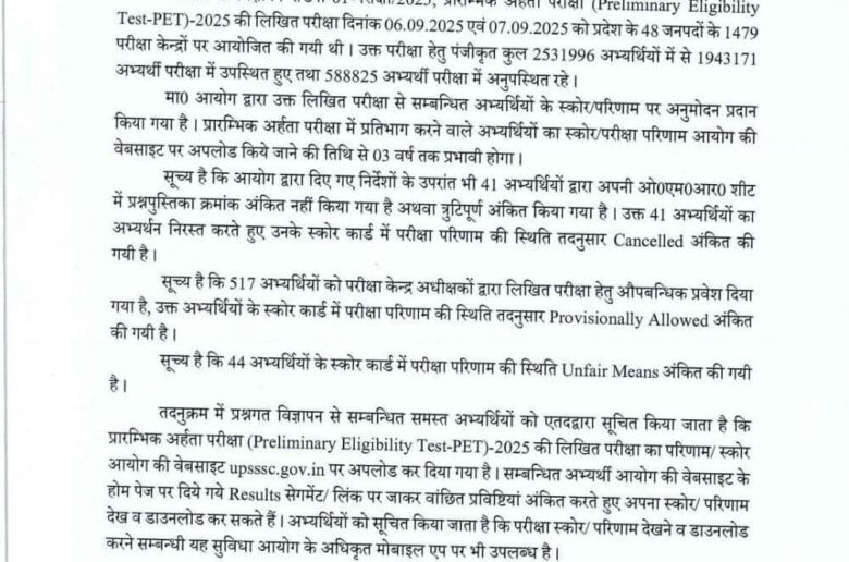 UPSSSC UP PET 2025 Result OUT, देखने के लिए यहां पर क्लिक करें 👇