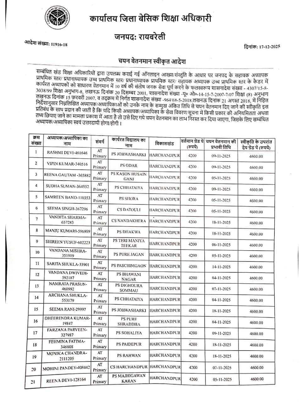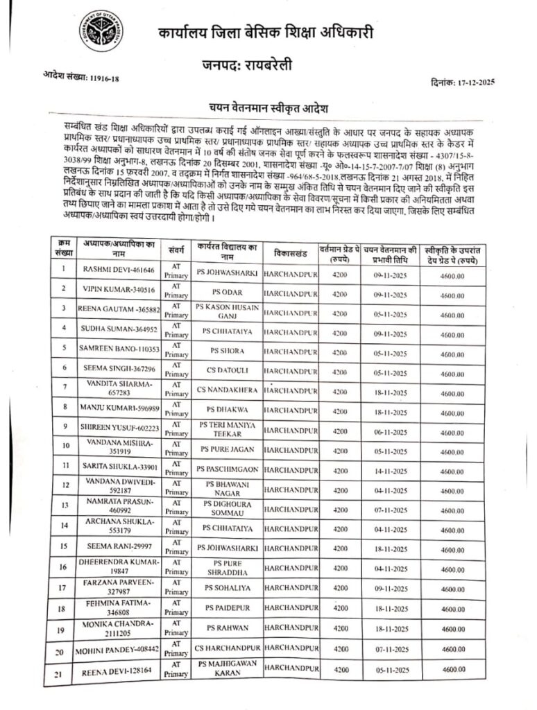 चयन वेतनमान स्वीकृत आदेश👆