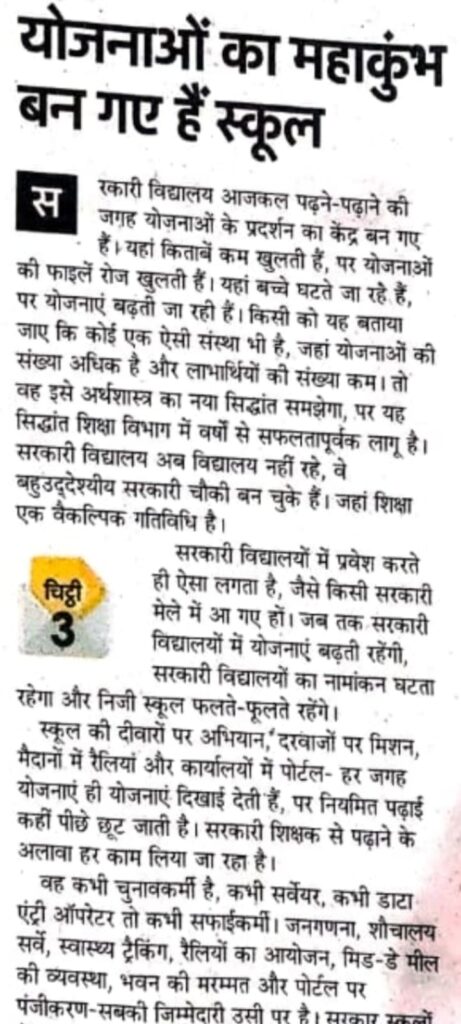 Home PRIMARY KA MASTER NEWS योजनाओं का महाकुंभ बन गए हैं स्कूल