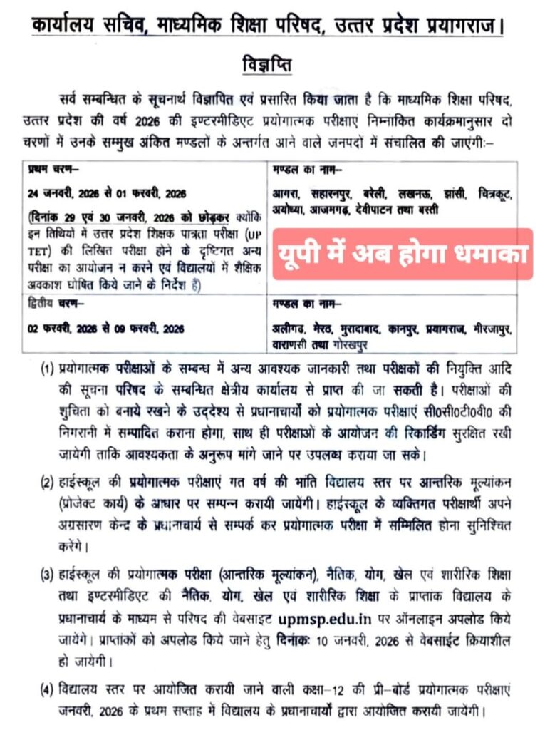इसके अनुसार यूपी टेट २९ व ३० जनवरी को
