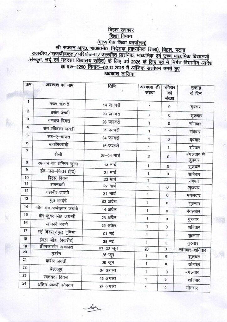 Home BIHAR TEACHER NEWS बिहार के सरकारी विद्यालयों के लिए संशोधित अवकाश तालिका जारी