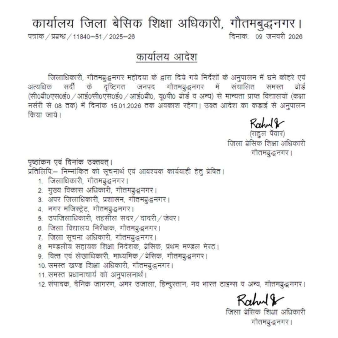 गौतम बुध नगर में 15 जनवरी तक अवकाश रहेगा देखें आदेश