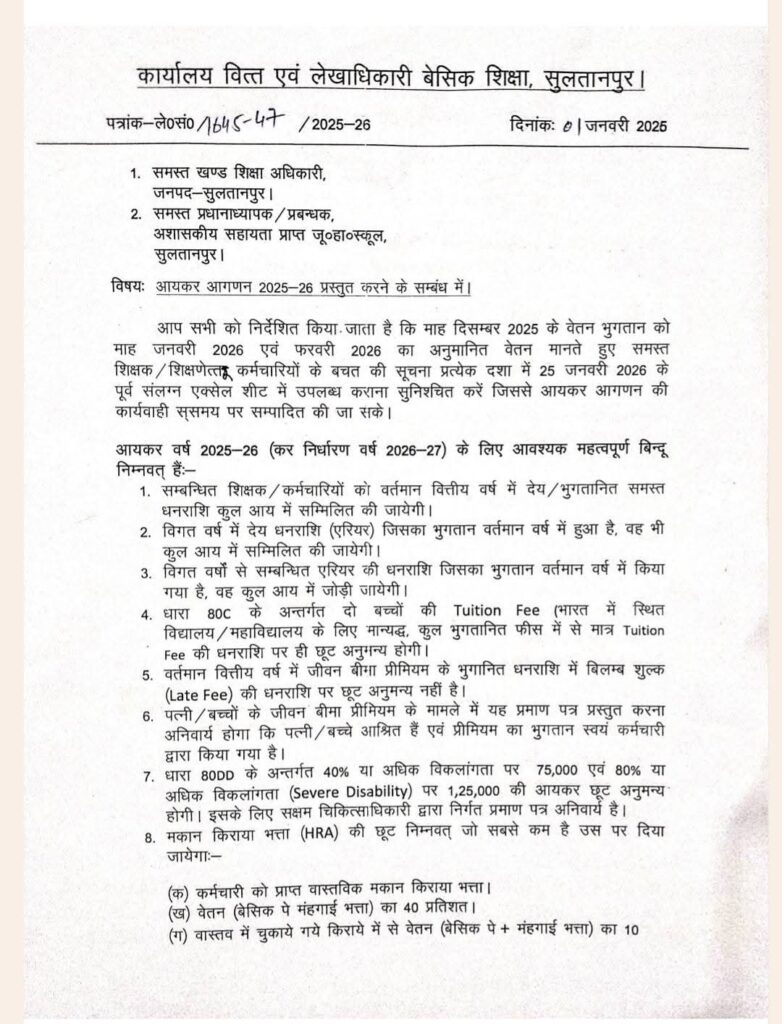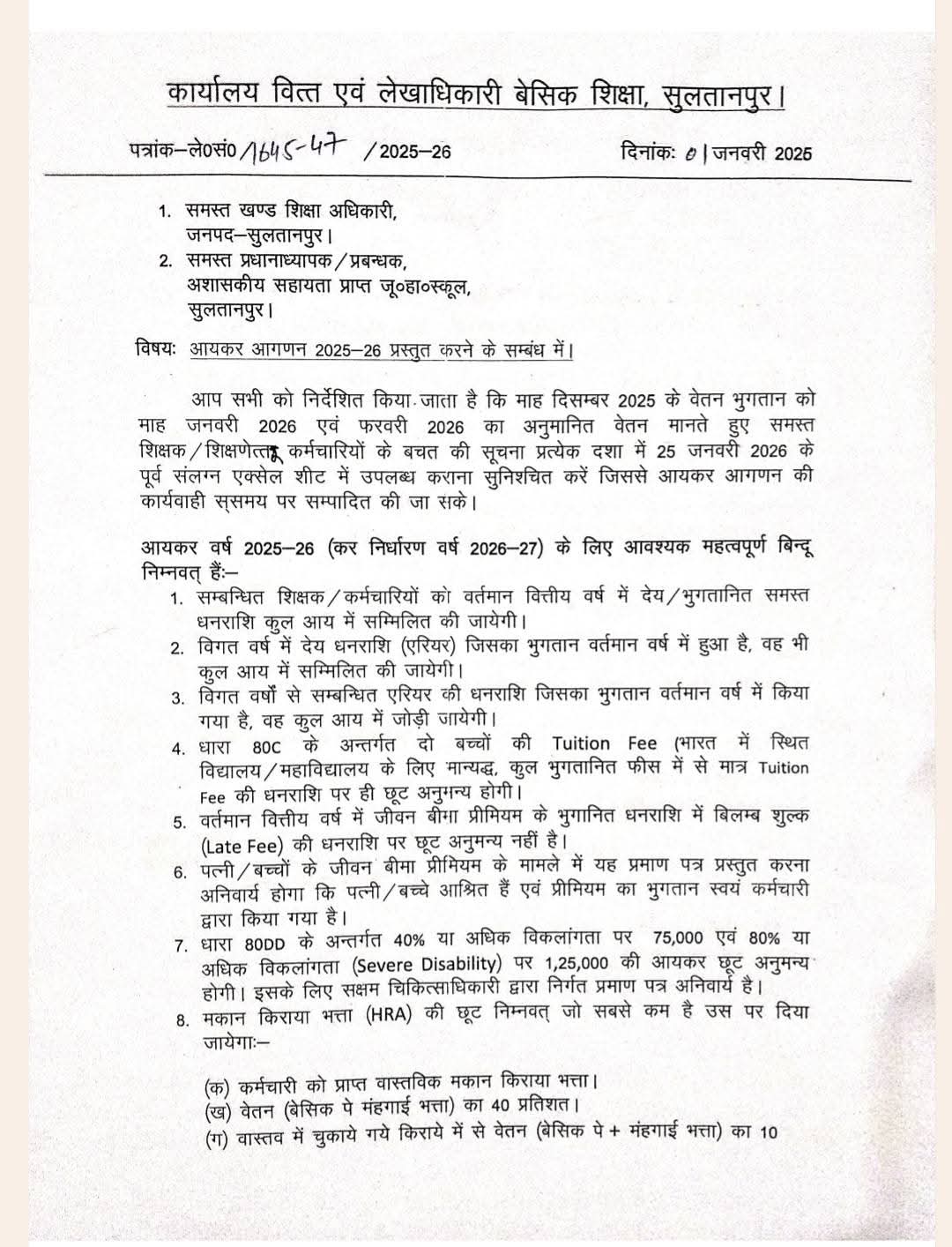 Home PRIMARY KA MASTER आयकर आगणन के संबंध मे वित्त लेखा अधिकारी का आदेश
