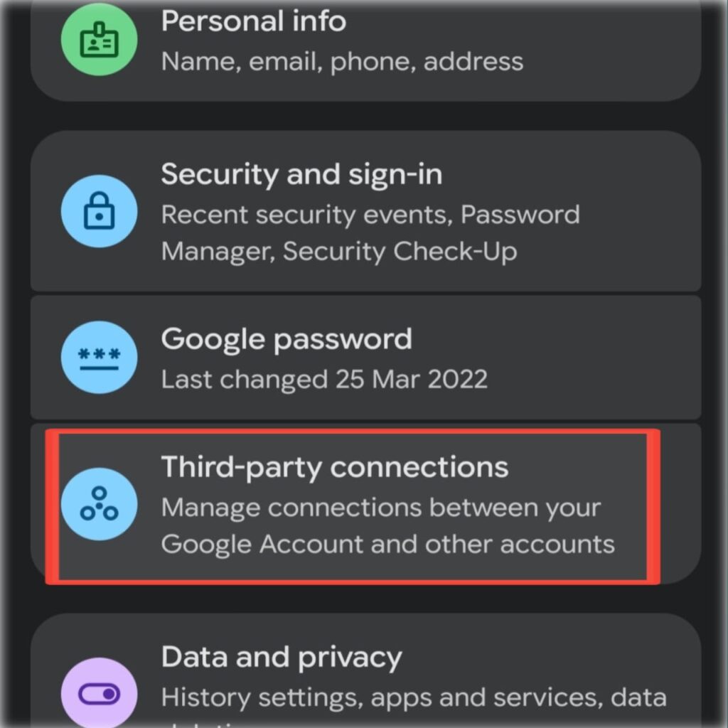 тмЗя╕П рдиреАрдЪреЗ Third-party apps and services with account access рдкрд░ tap рдХрд░реЗрдВ