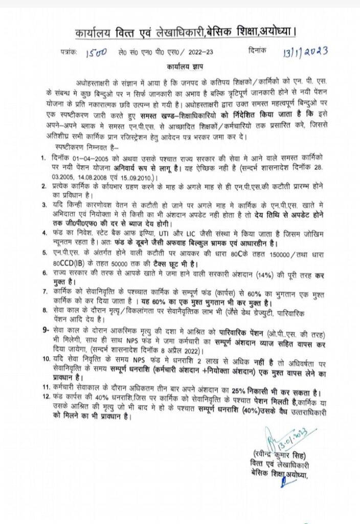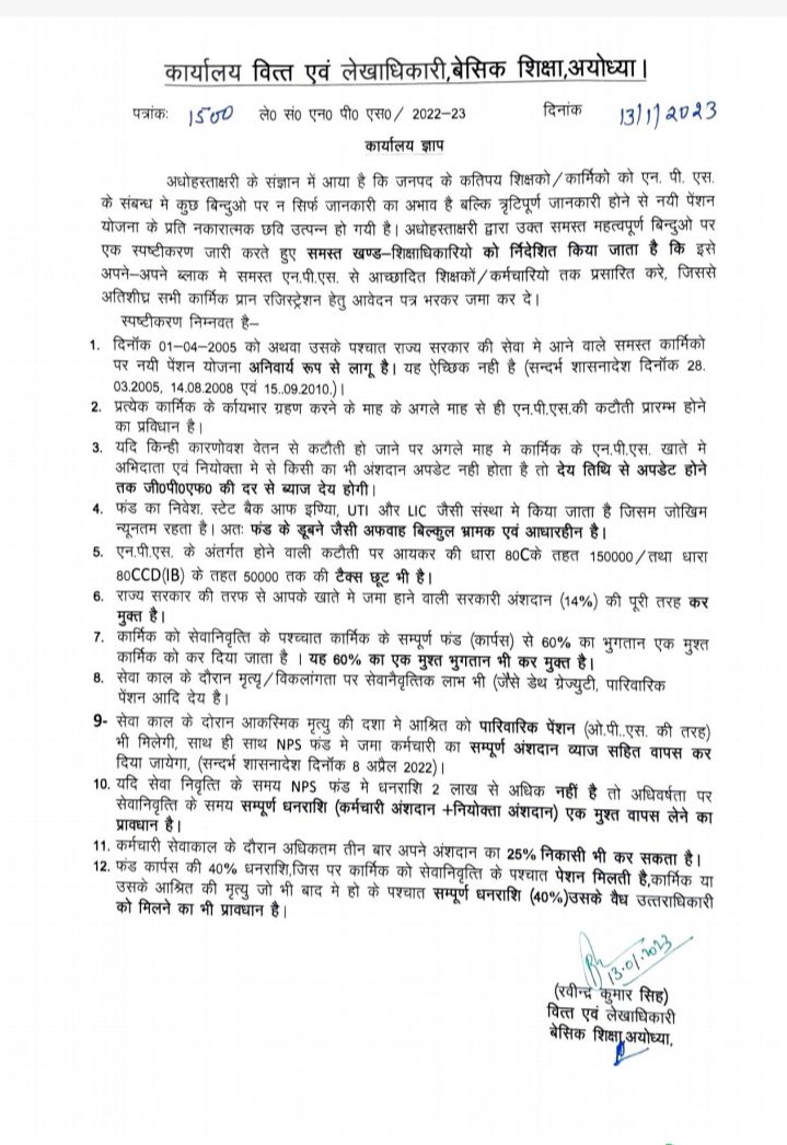 Home PRIMARY KA MASTER NEWS NPS की स्थिति वित्त एवं लेखाधिकारी बेसिक शिक्षा अयोध्या द्वारा स्पष्ट किया गया है—