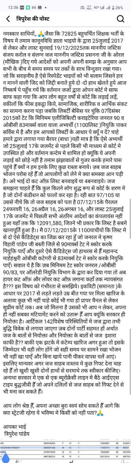 यह 72825 प्रशिक्षु शिक्षक भर्ती अब क्या नया बवाल शुरू हुआ है : वायरल हो रही त्रिपुरेश पाण्डेय की यह पोस्ट