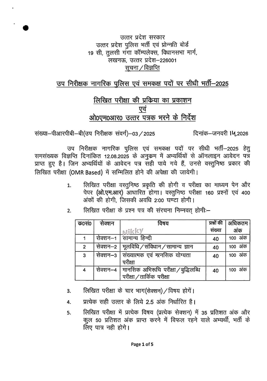 Home पुलिस भर्ती UP Police SI भर्ती 2025 – लिखित परीक्षा (OMR) अपडेट